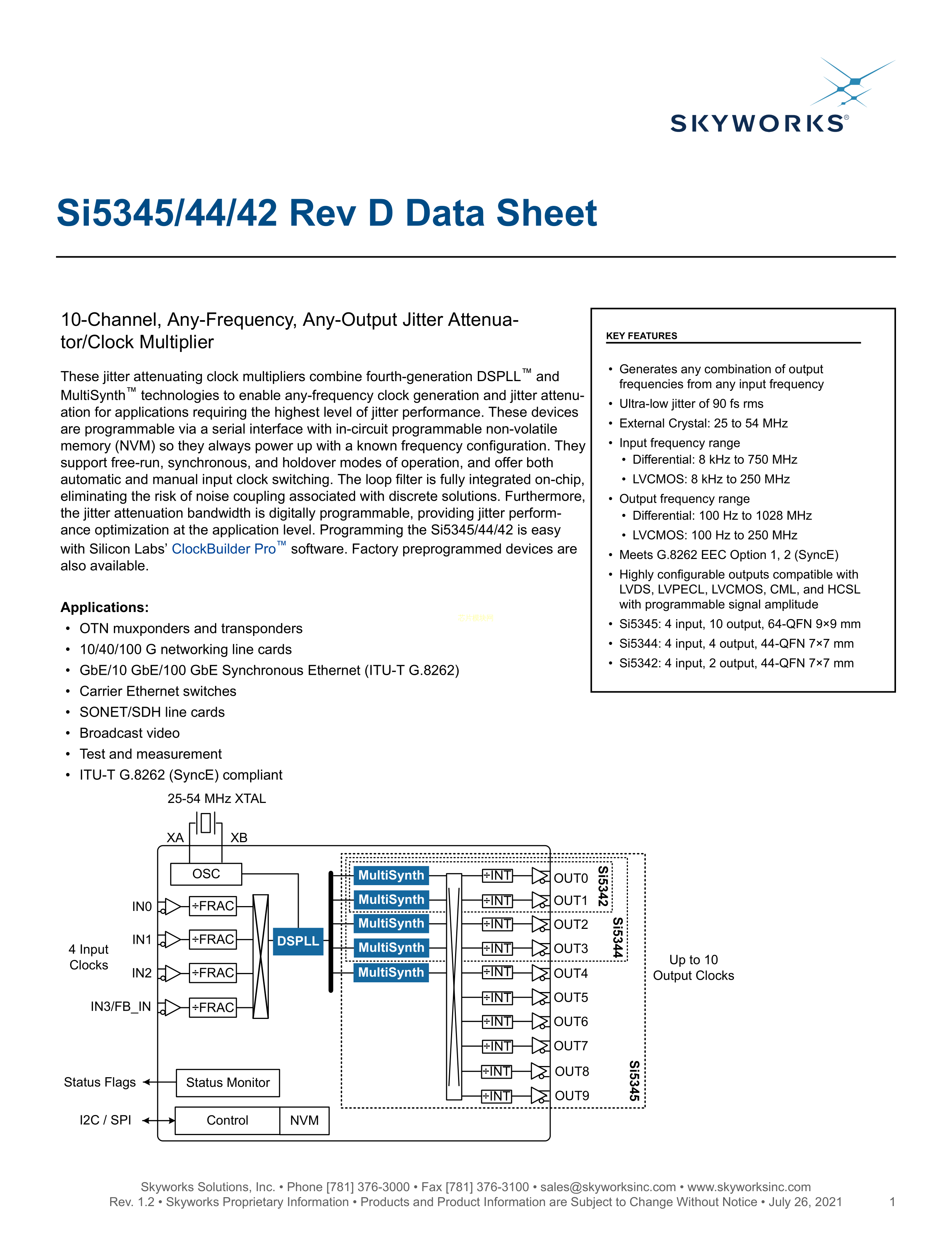 SI5345D-B03927-GM数据手册-封装SILICONLABS(芯科)PDF规格书,中英文下