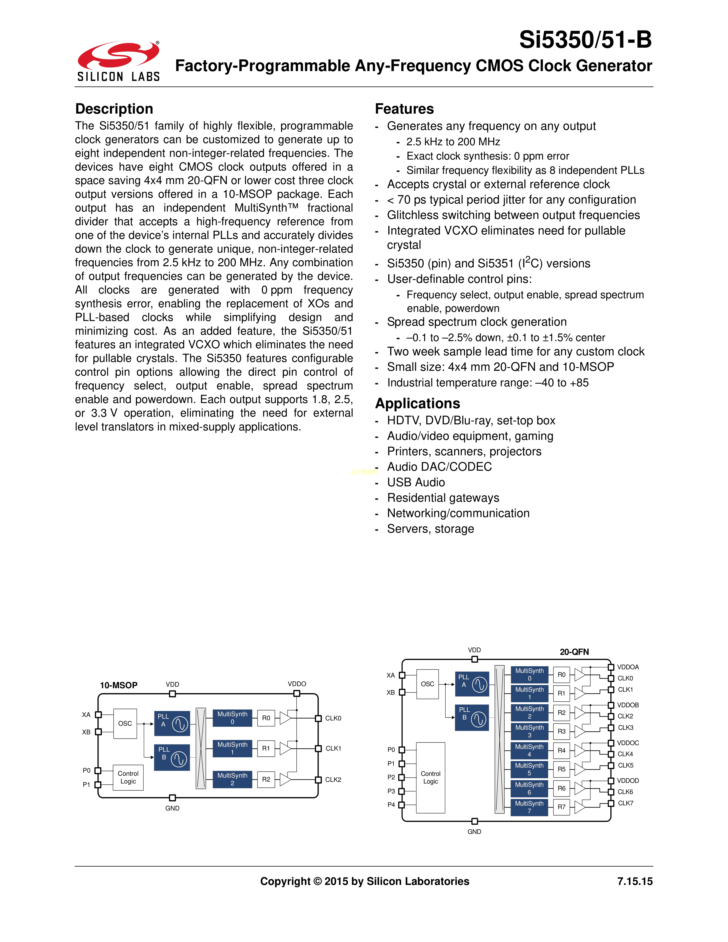 SI5350A-B07897-GM数据手册QFN-20(4x4)封装SILICONLABS(芯科)PDF规格书,中英文下载