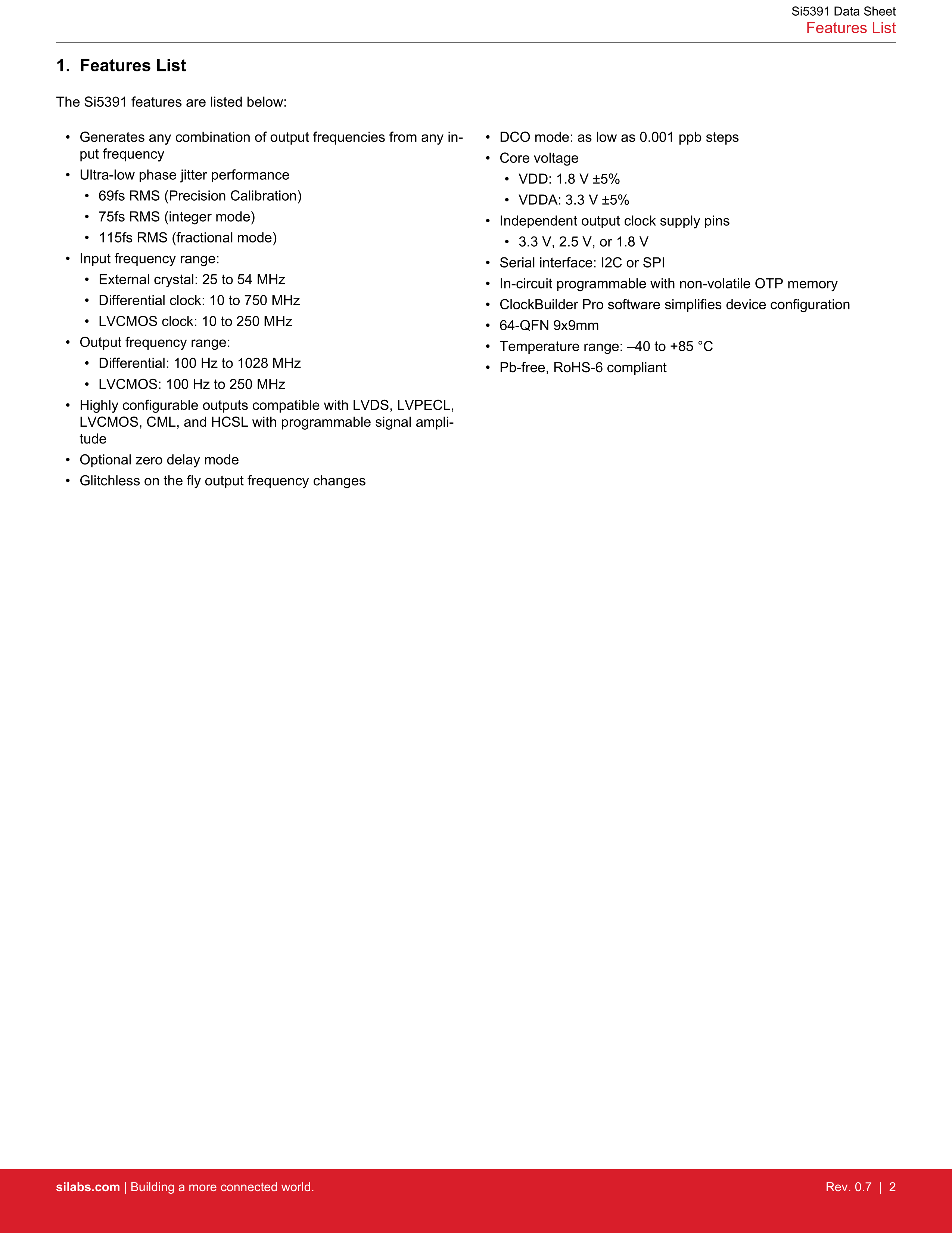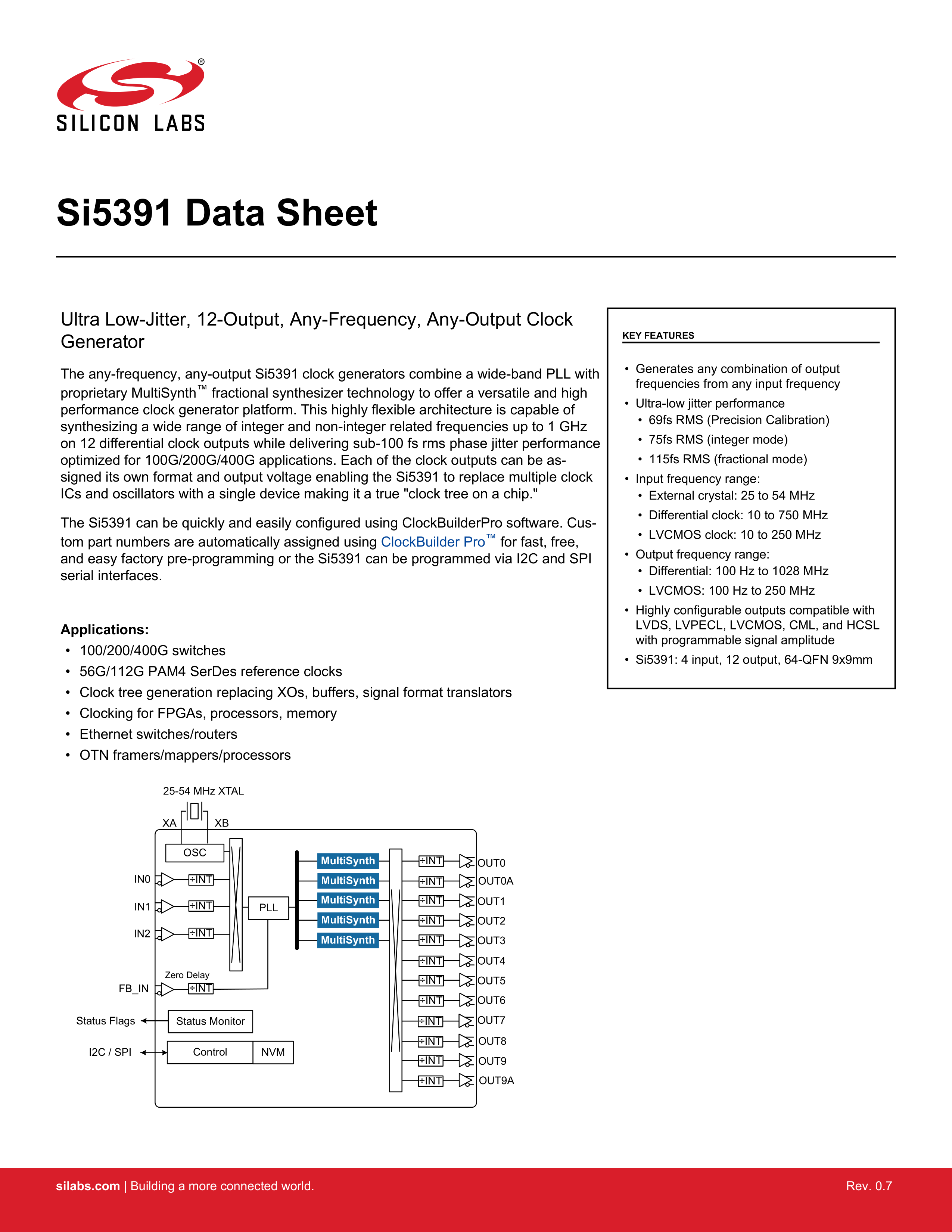 SI5391B-A-GMR数据手册QFN-64(9x9)封装SILICON LABS(芯科)PDF规