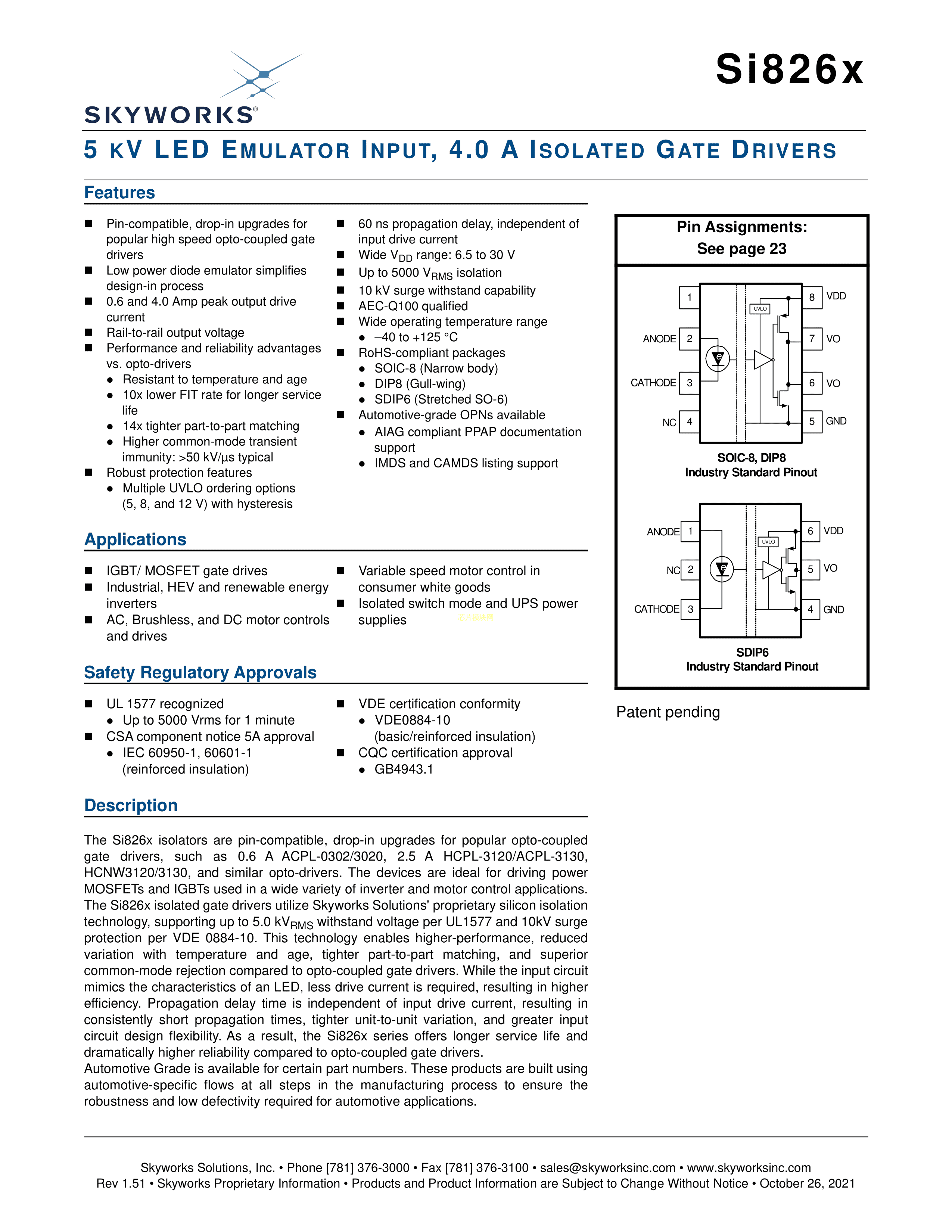 SI8261BAC-C-ISR数据手册SOIC-8封装MICROCHIP(美国微芯)PDF规格书,中