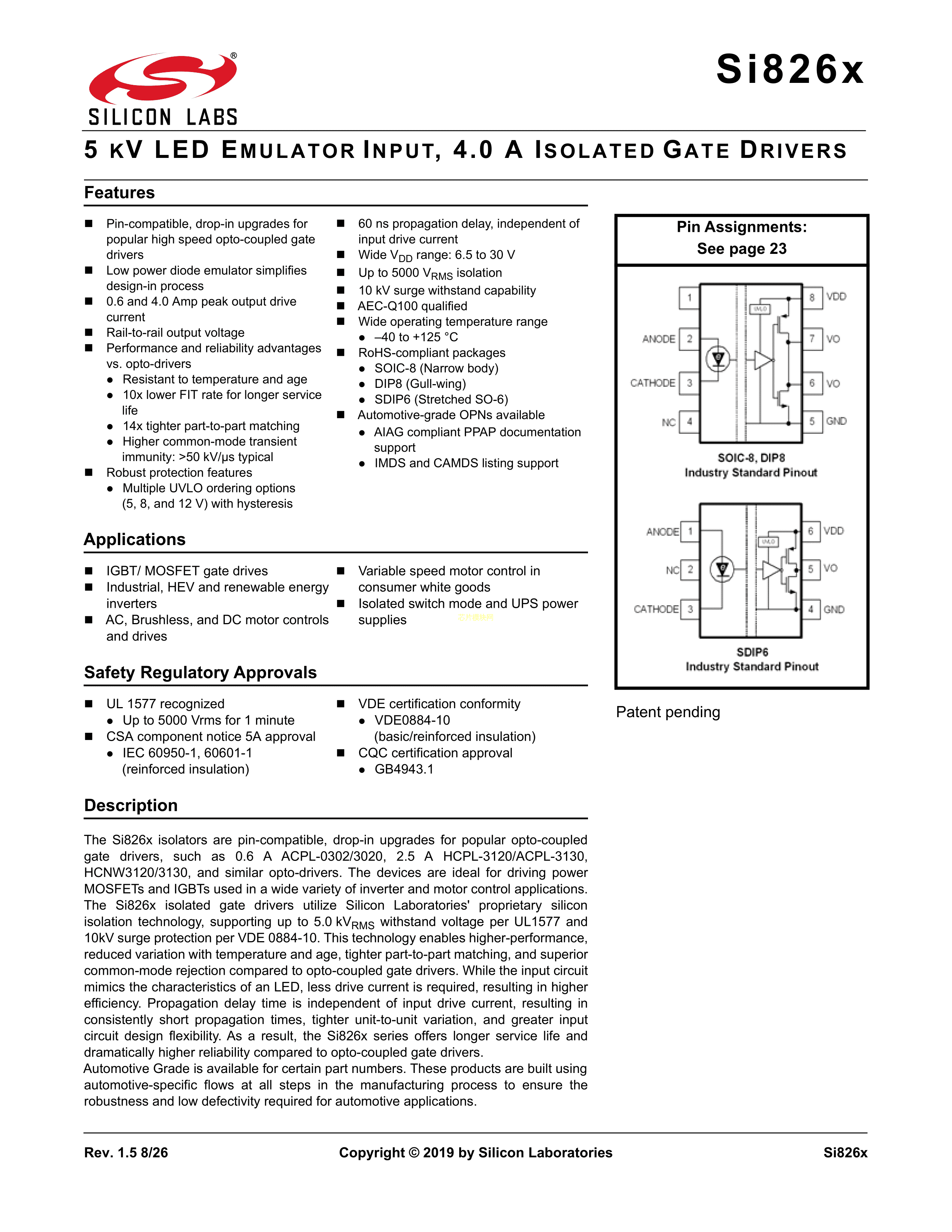 SI8261BCC-C-IP数据手册DIP-8封装SILICONLABS(芯科)PDF规格书,中英文