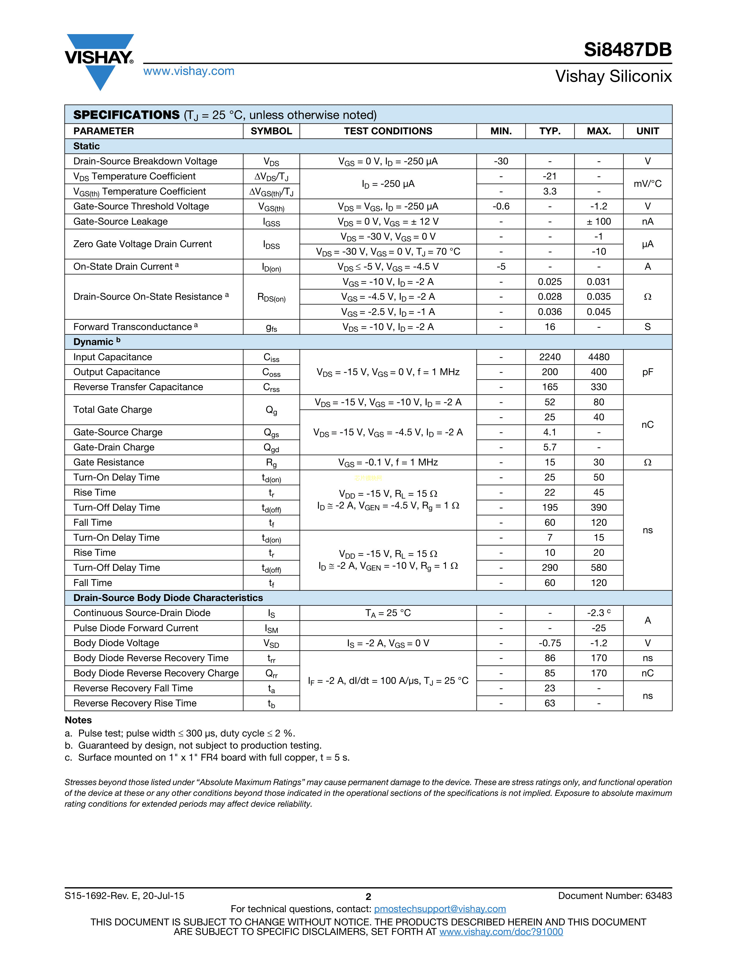 SI8487DB-T1-E1数据手册MicroFoot-4封装VISHAY(威世)PDF规格书,中英