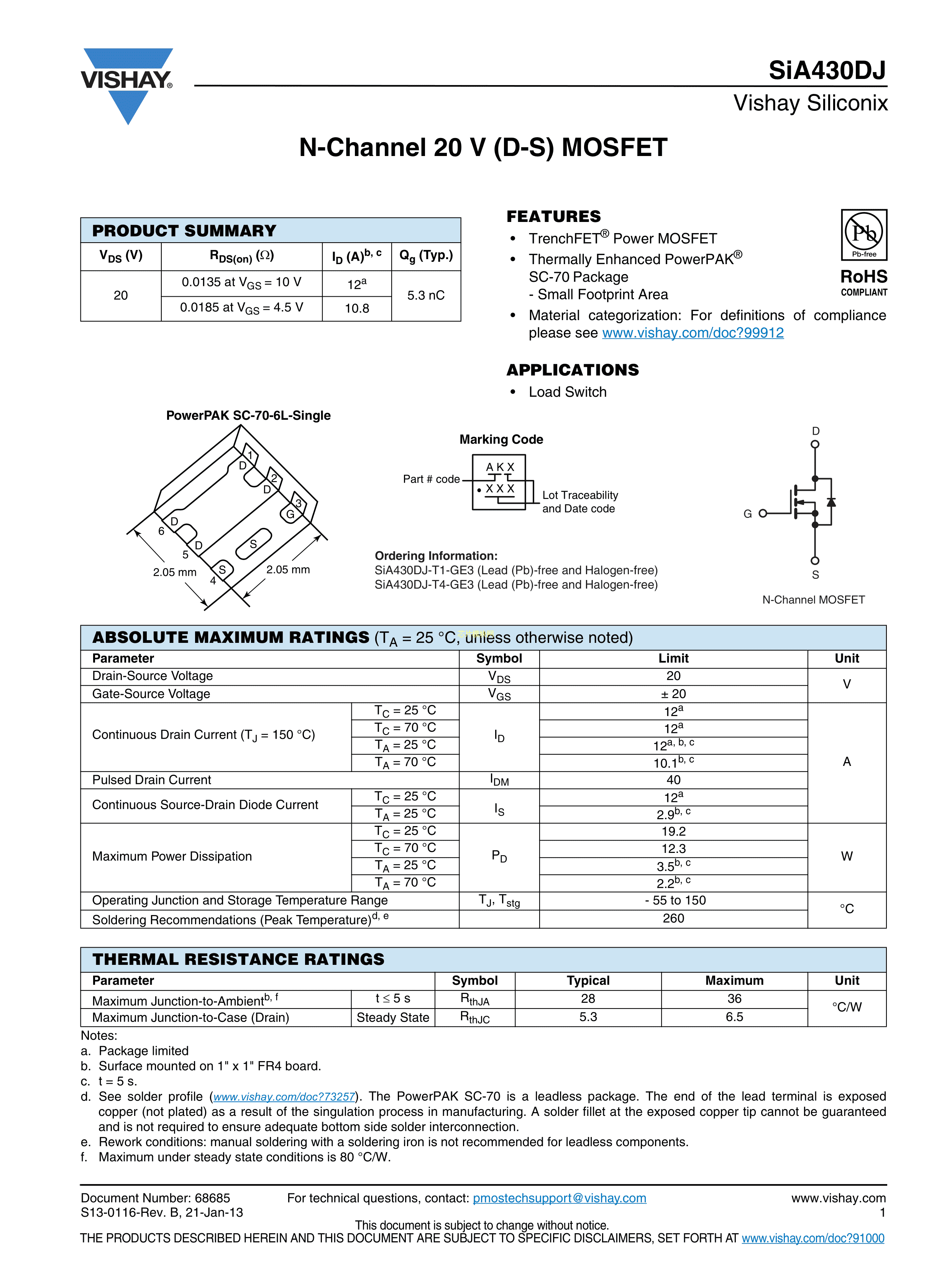 SIA430DJ-T1-GE3数据手册PowerPAK SC-70-6封装VISHAY(威世)PDF