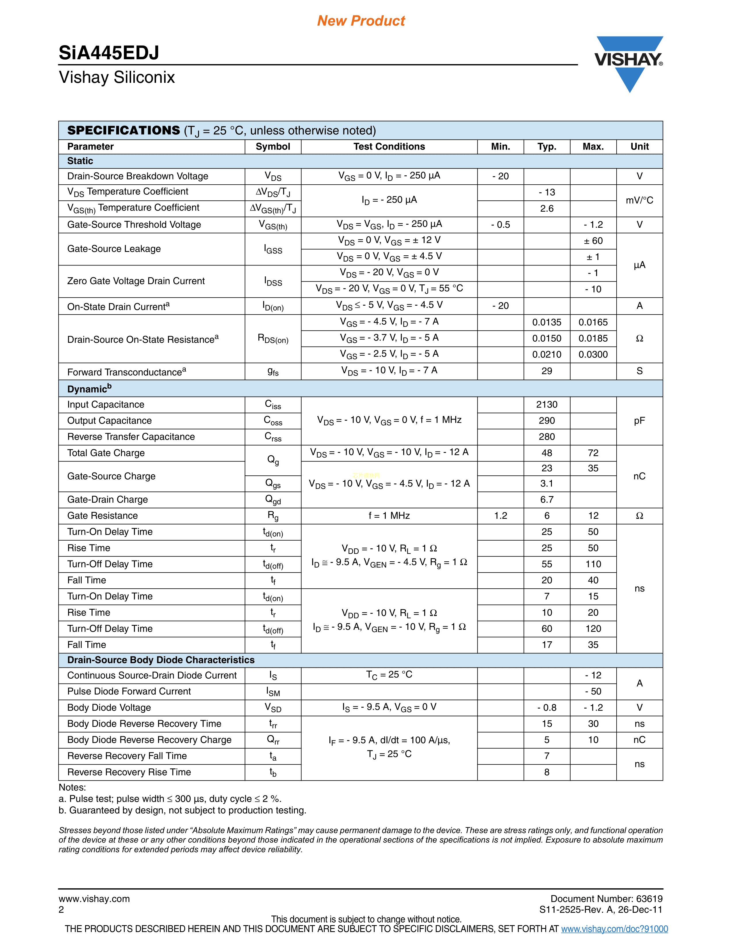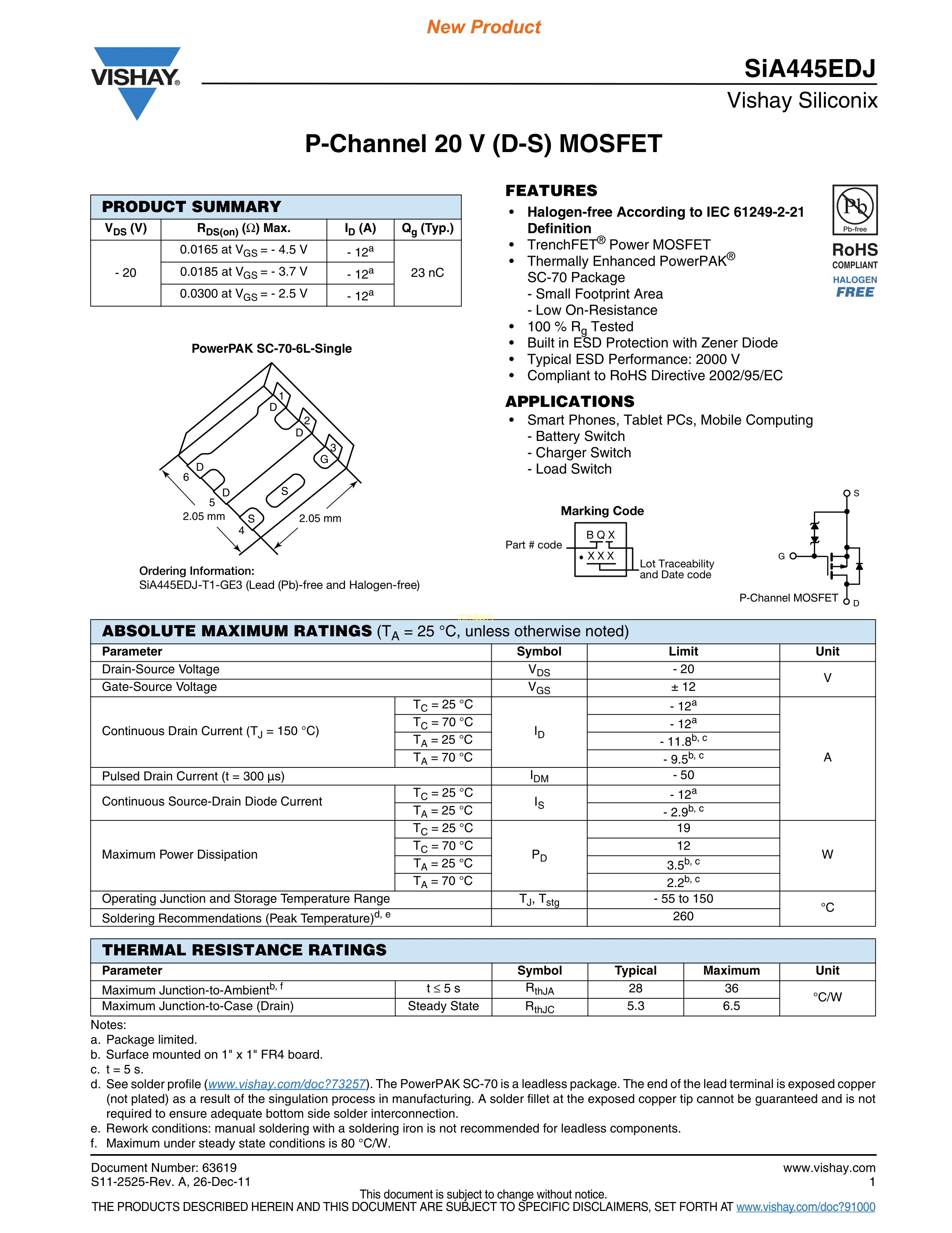 SIA445EDJ-T1-GE3数据手册PowerPAK SC-70-6封装VISHAY(威世)PD