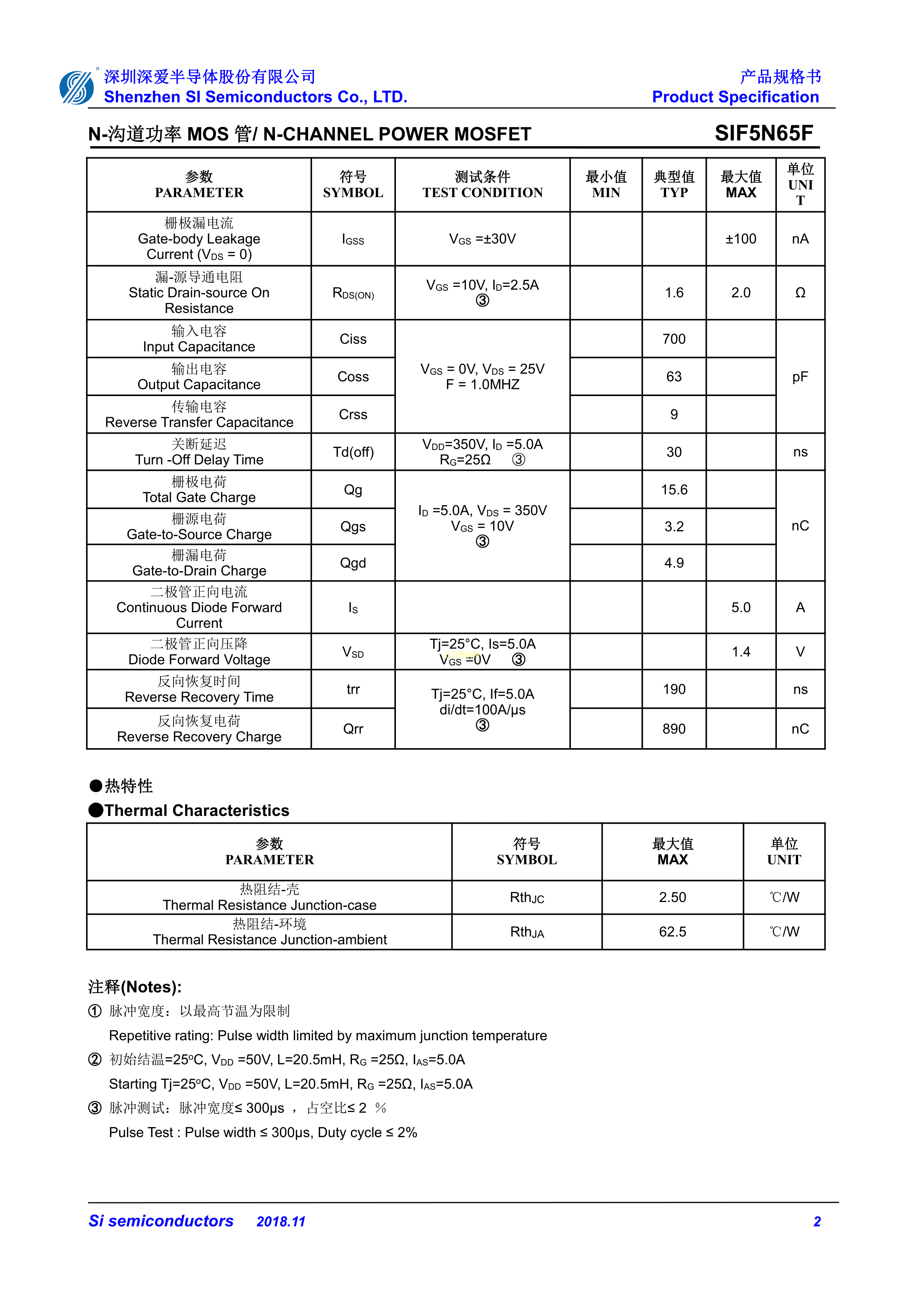 SIF5N65F-TO-252数据手册TO-252封装SI(深爱)PDF规格书,中英文下载