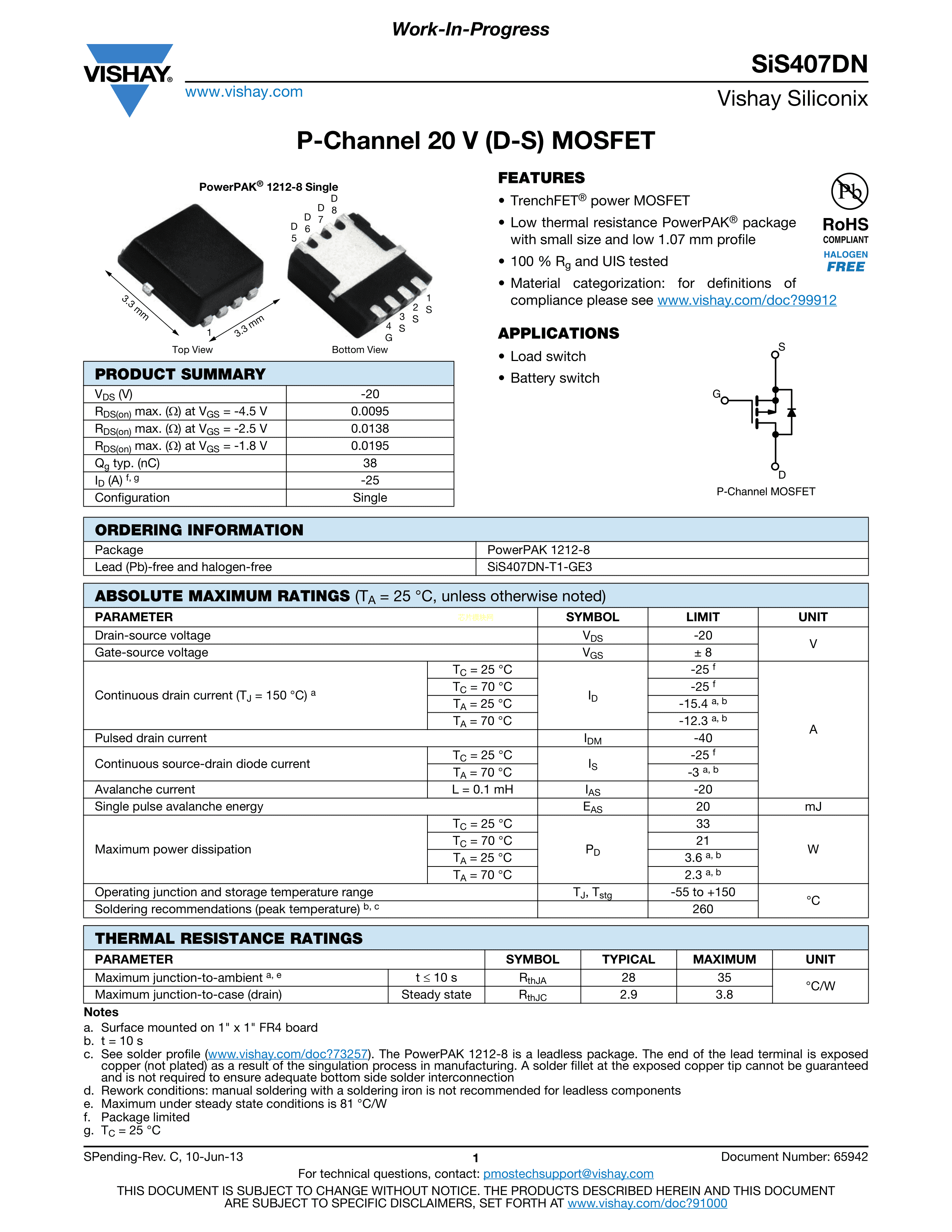 SIS407DN-T1-GE3数据手册PowerPAK1212-8封装VISHAY(威世)PDF规格书,中英文下载