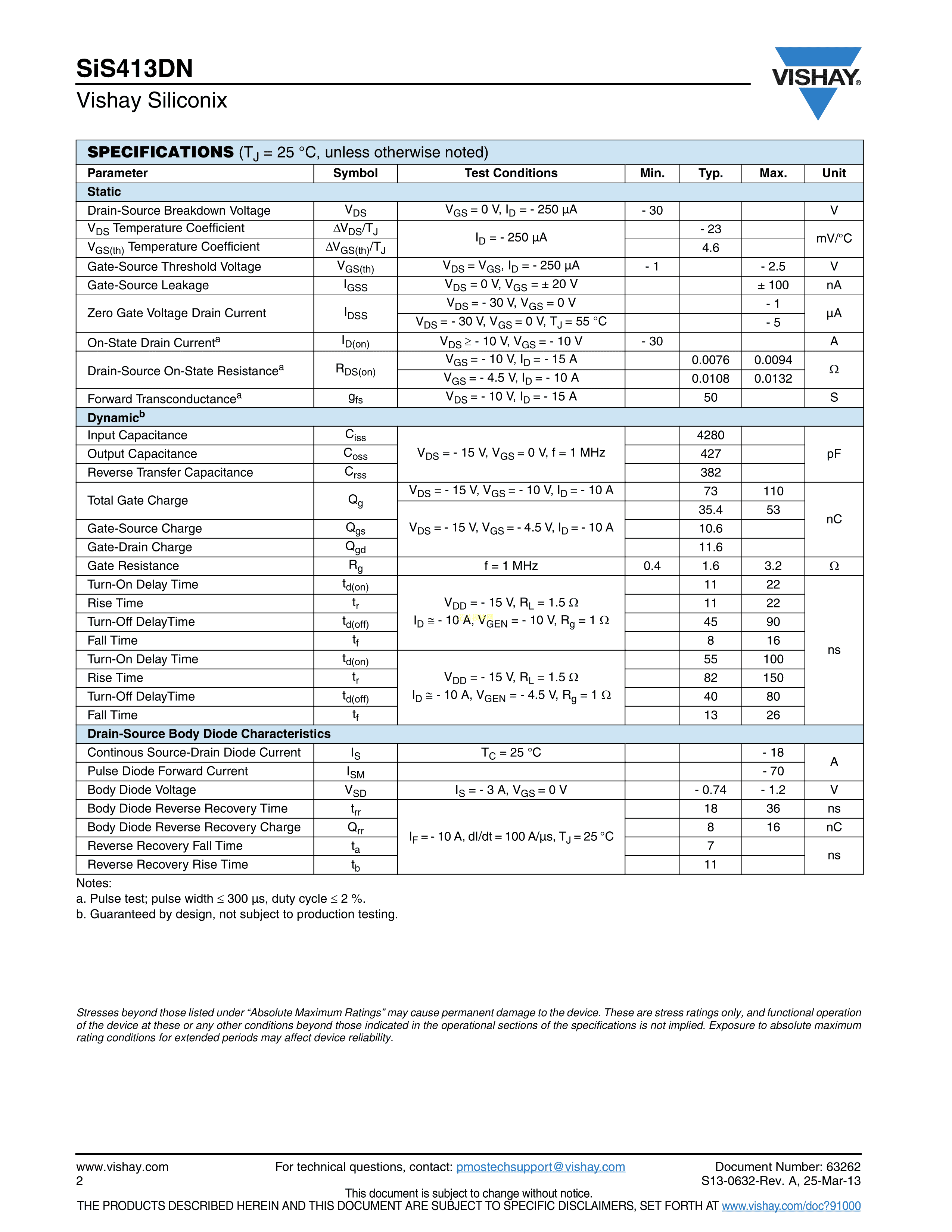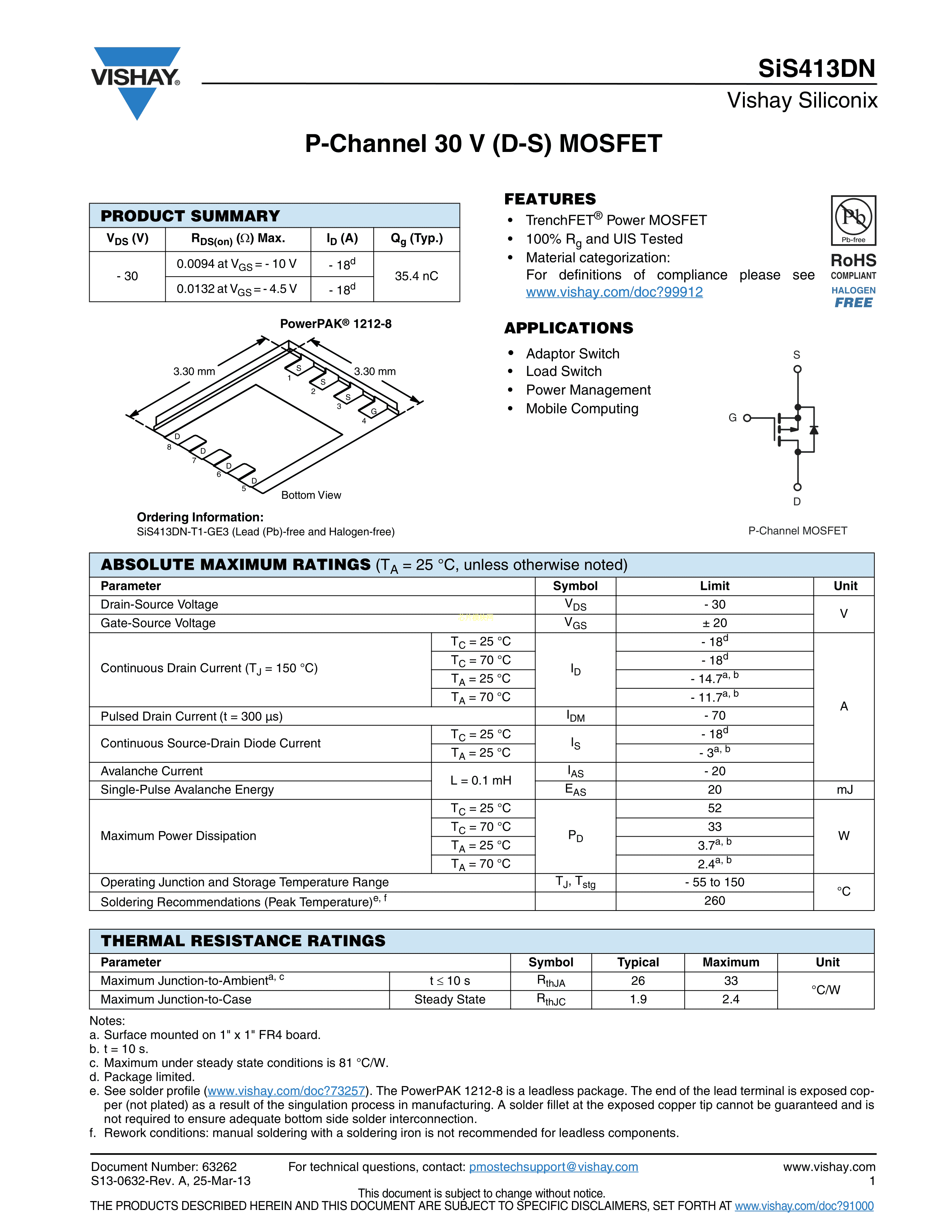 SIS413DN-T1-GE3数据手册PowerPAK1212-8封装VISHAY(威世)PDF规格书,中英文下载