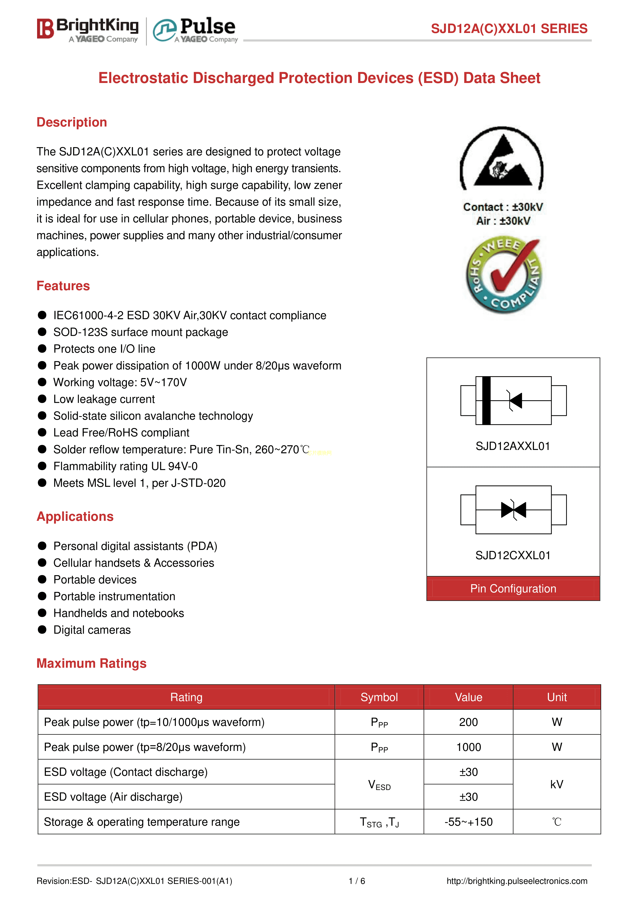 SJD12A30L01数据手册SOD-123S封装Brightking(台湾君耀)PDF规格书,中英