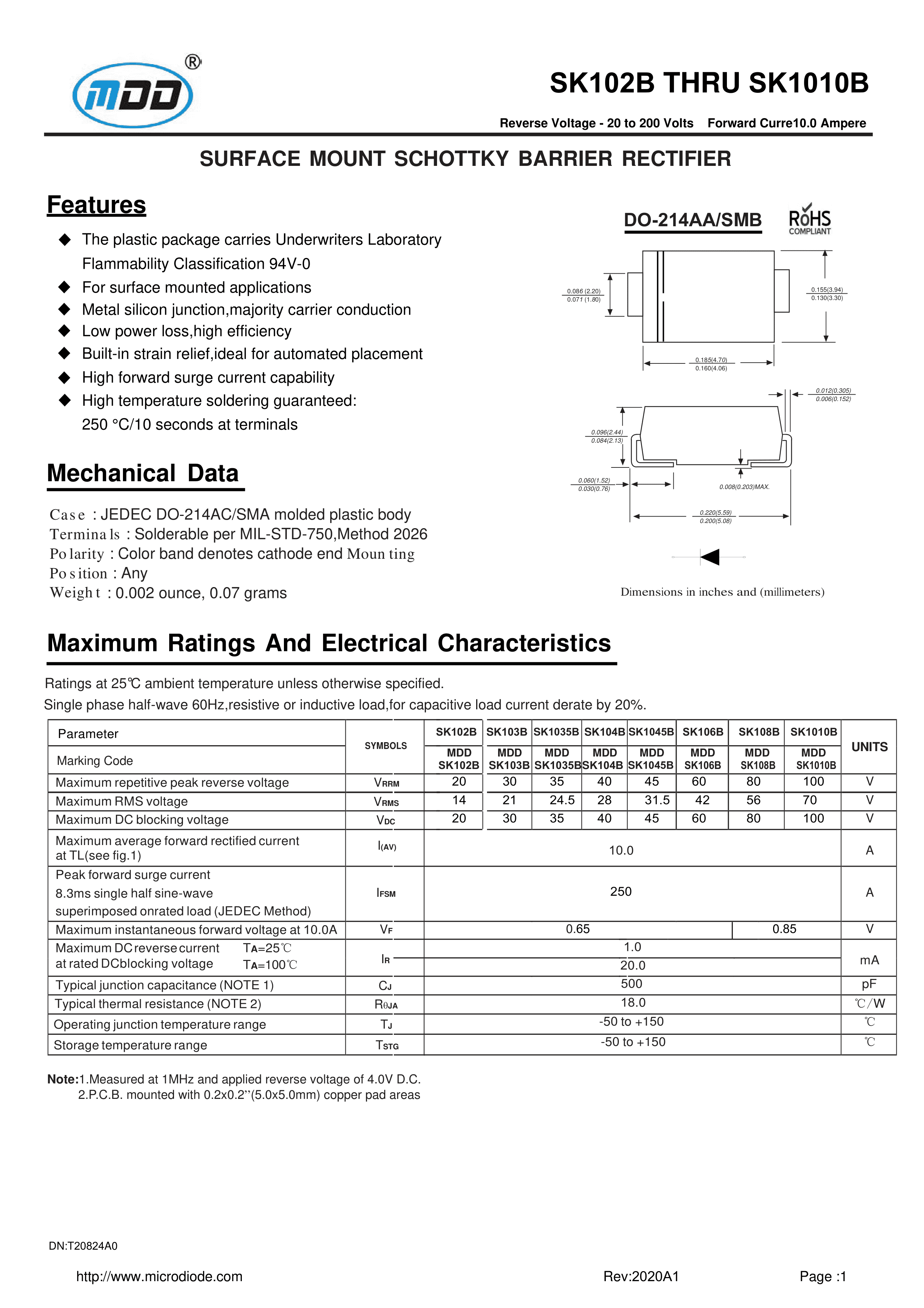 SK1045B数据手册SMB(DO-214AA)封装MDDPDF规格书,中英文下载