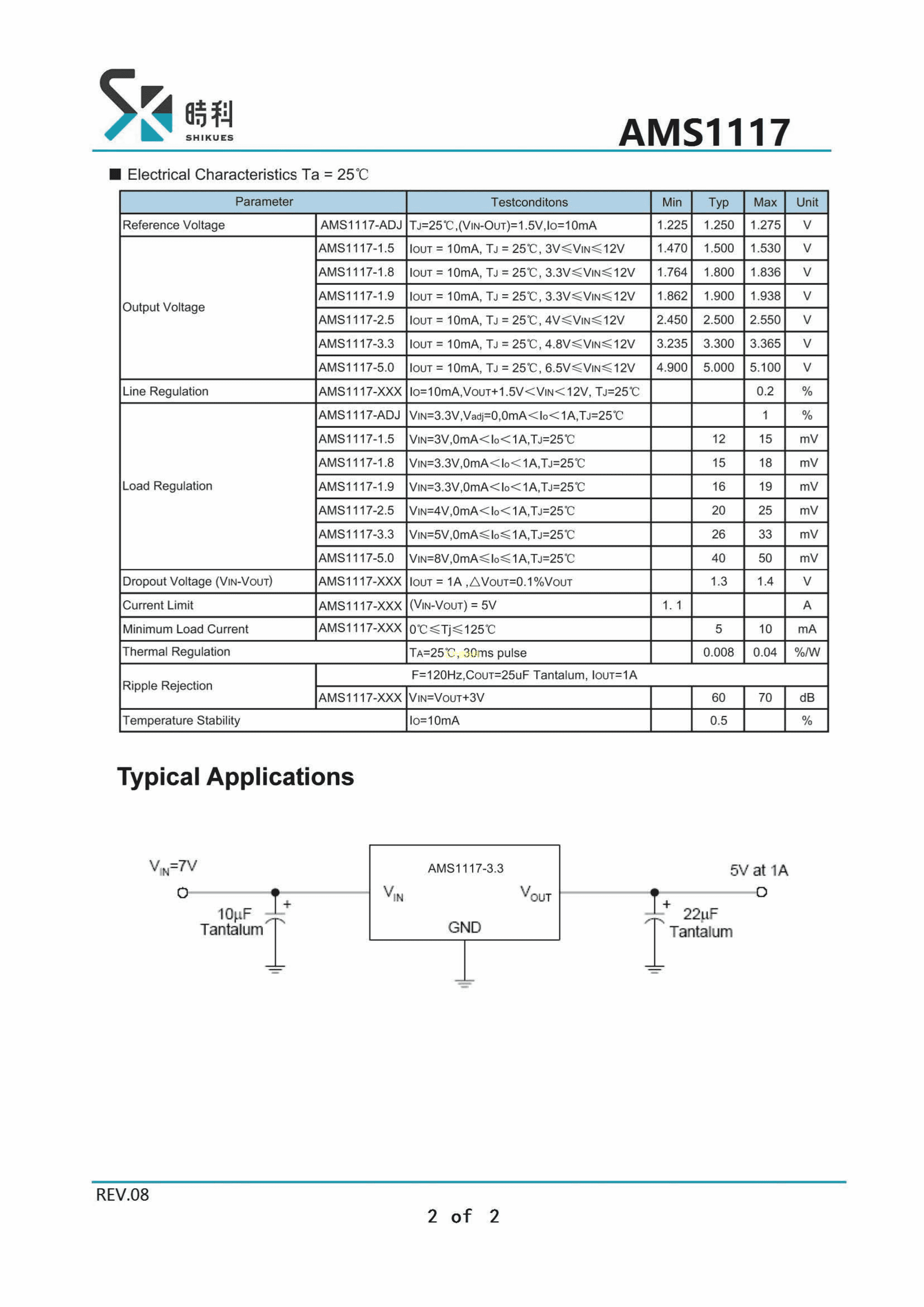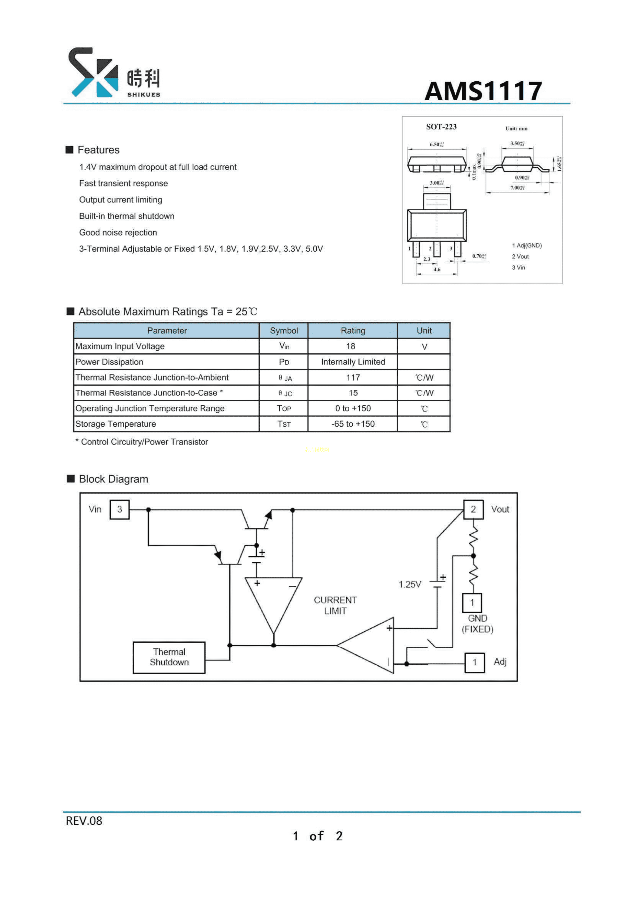 SK1117-3.3数据手册SOT-223封装SHIKUES(时科)PDF规格书,中英文下载