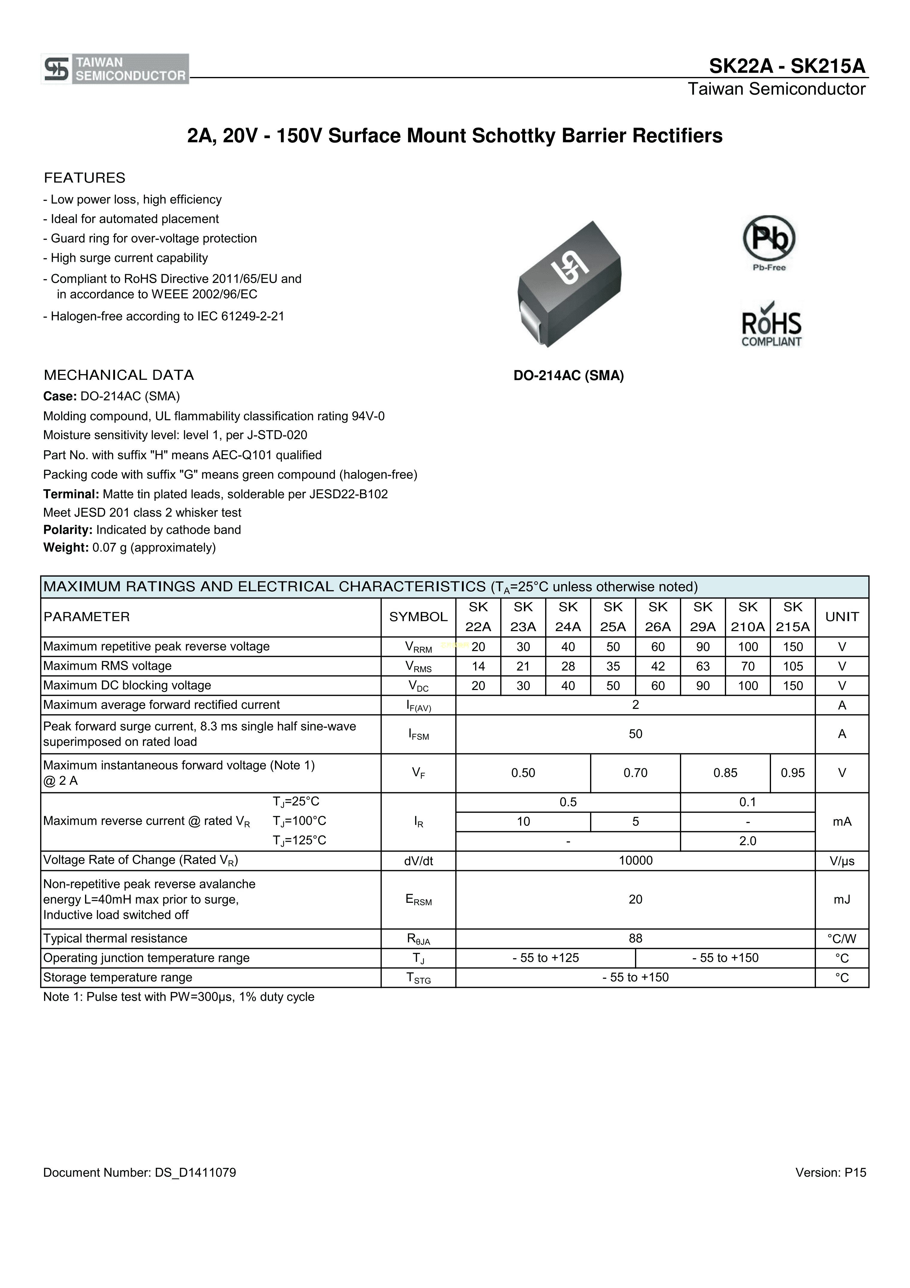 SK210AR3G数据手册SMA封装TaiwanSemiconductor(台湾半导体)PDF规格书,中英文下载