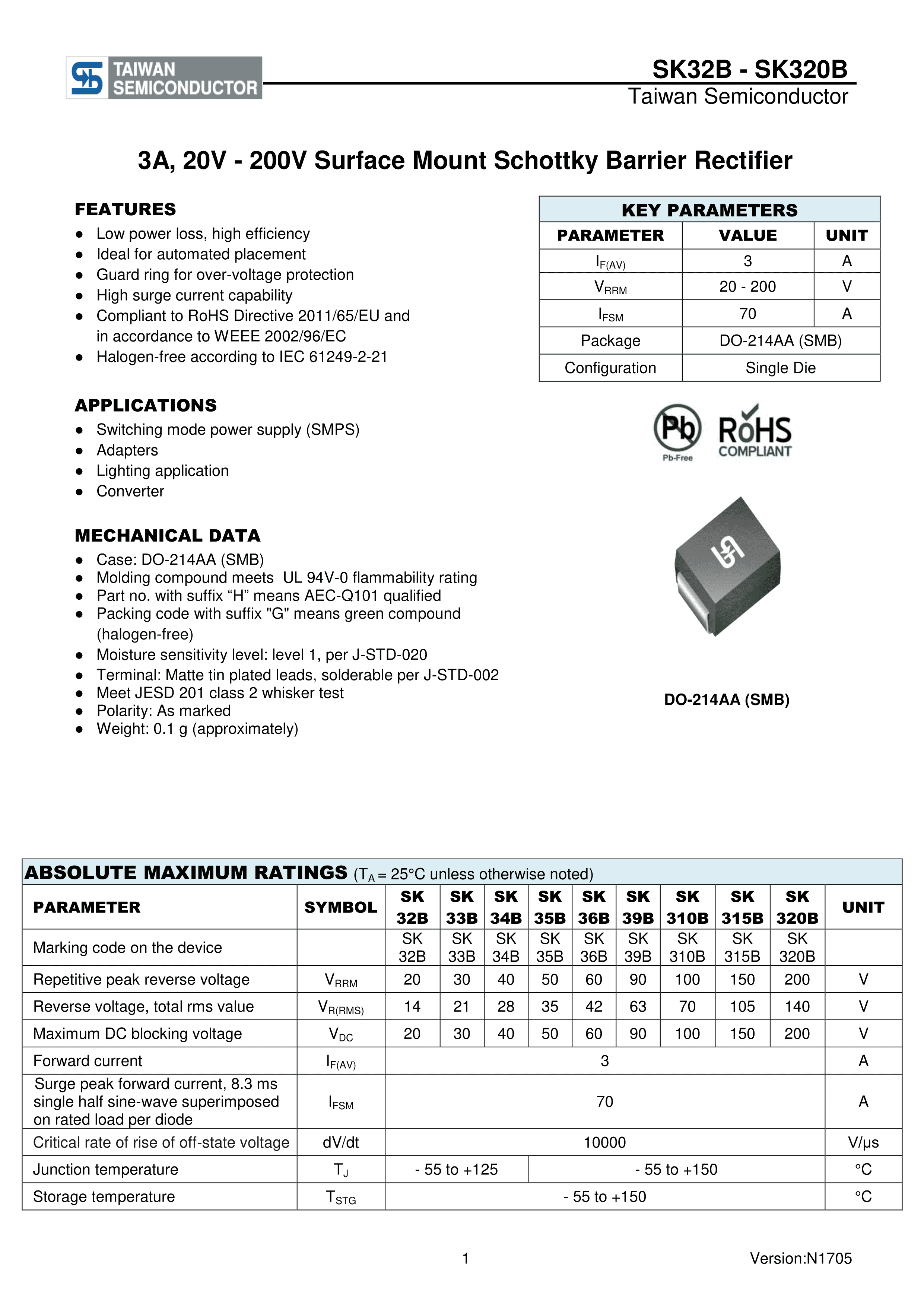 SK315B R4数据手册SMB(DO-214AA)封装Taiwan Semiconductor(台