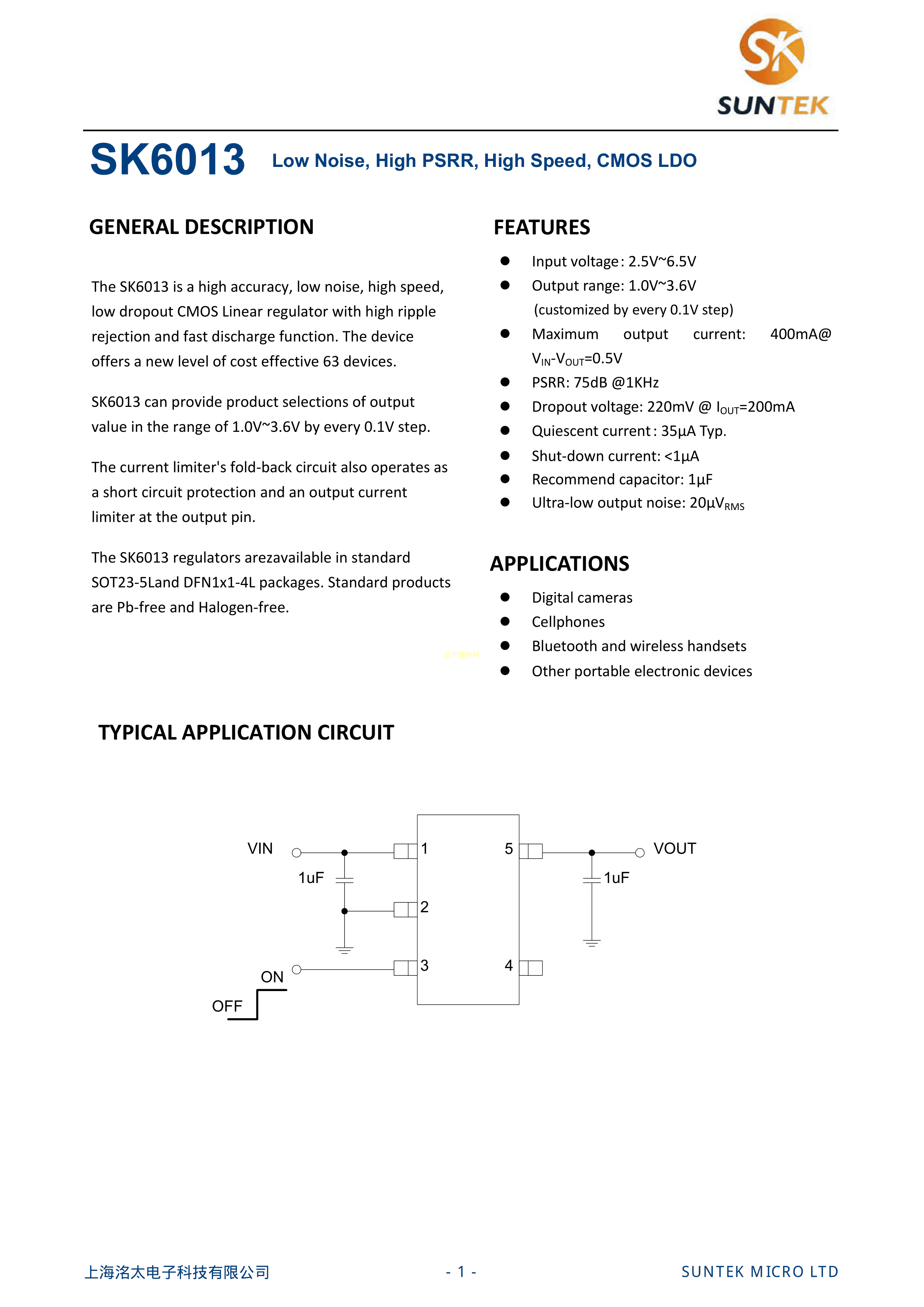 SK6013S5-30数据手册SOT23-5L封装suntek(洺太电子)PDF规格书,中英文下载