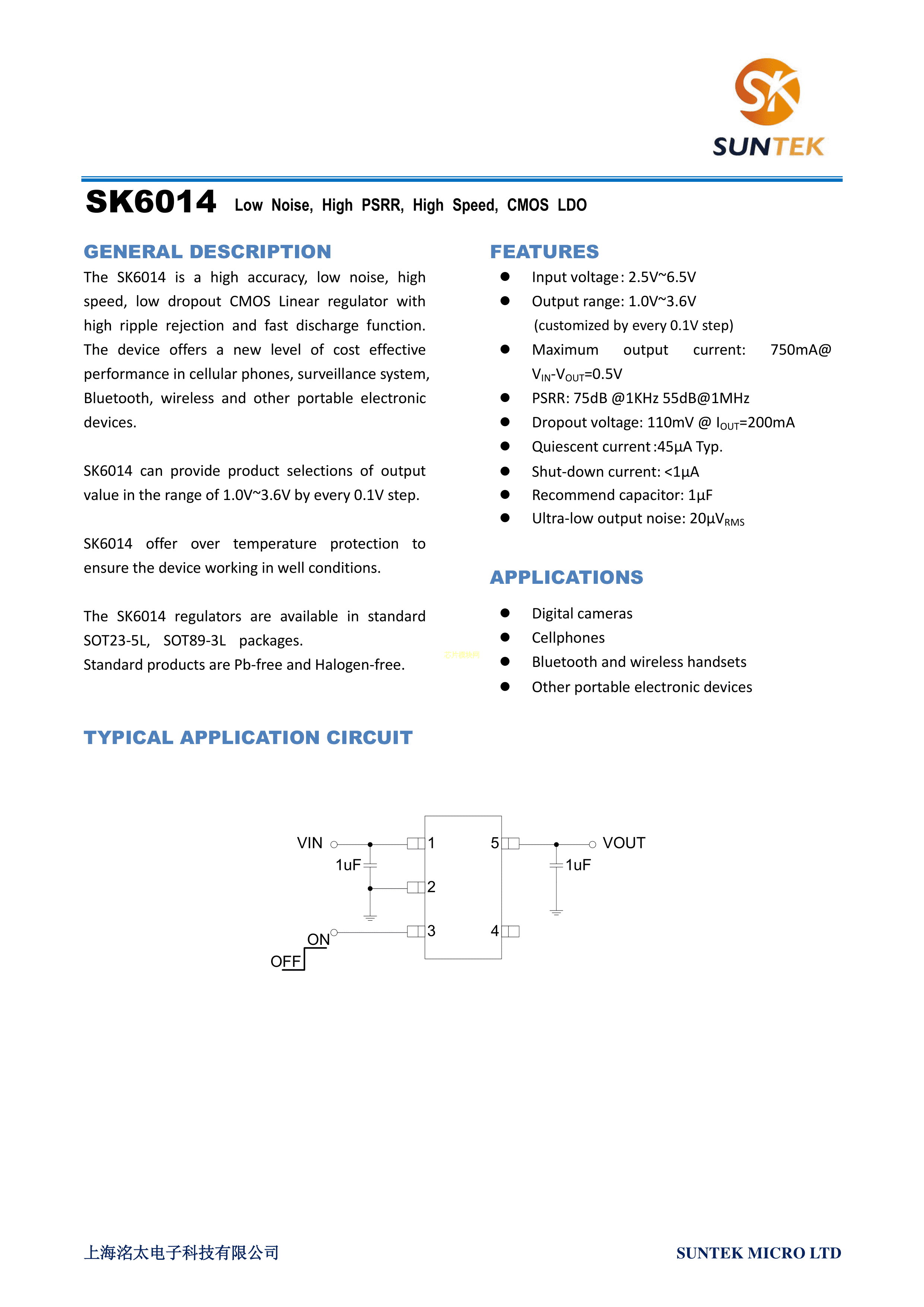 SK6014AS5-12数据手册SOT-23-5封装suntek(洺太电子)PDF规格书,中英文下载