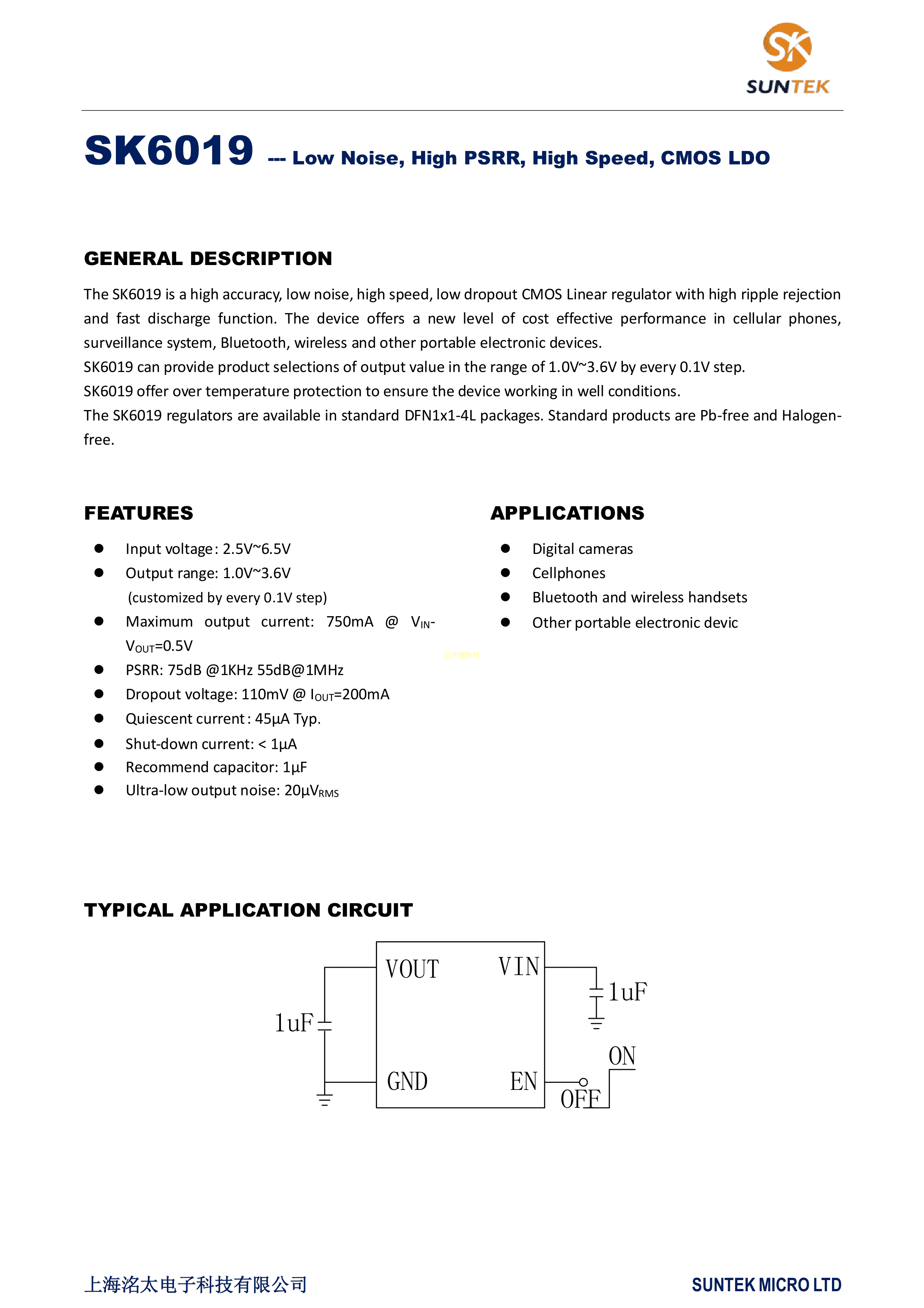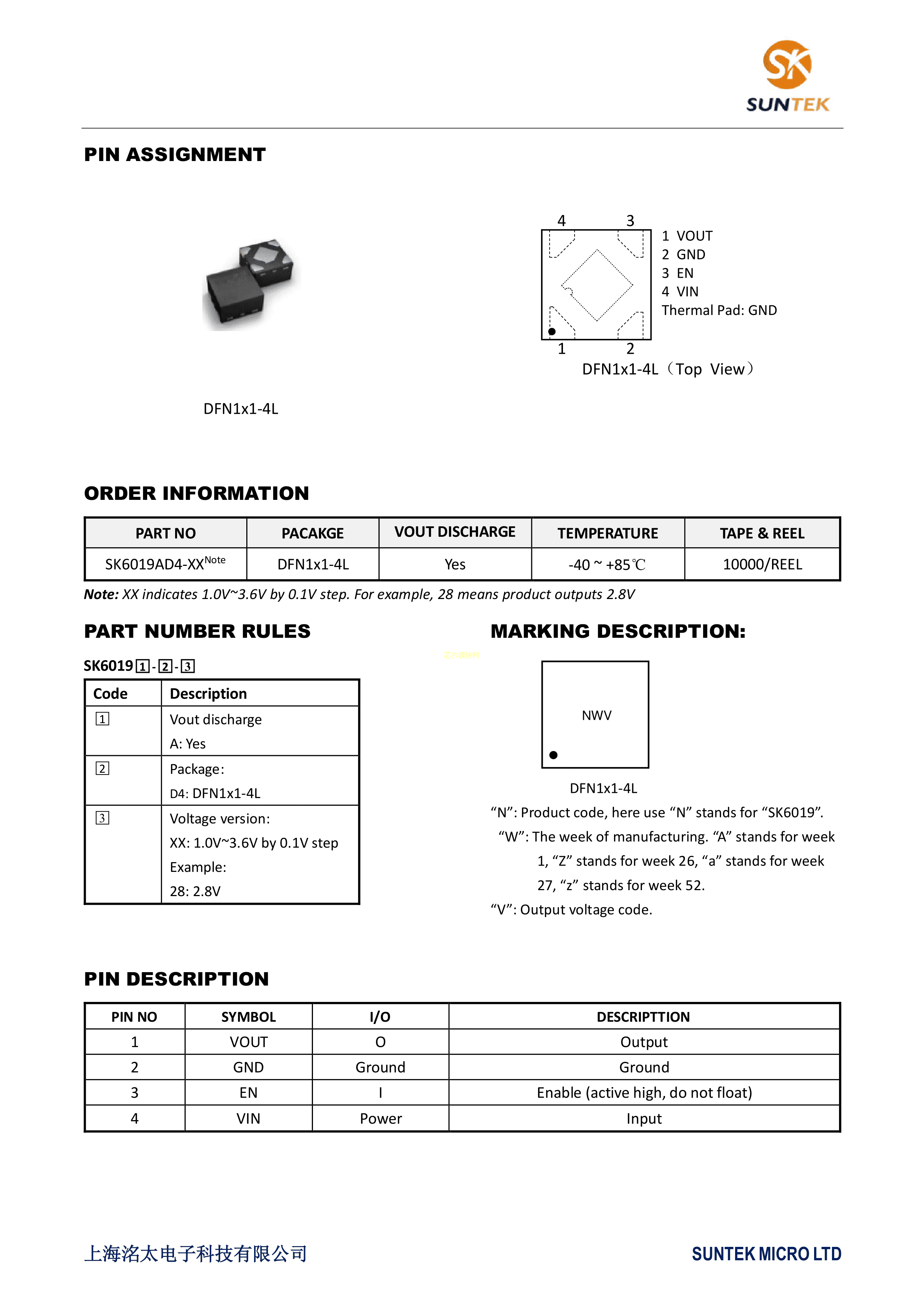 SK6019AD4-30数据手册DFN1x1-4L封装suntek(洺太电子)PDF规格书,中英文下