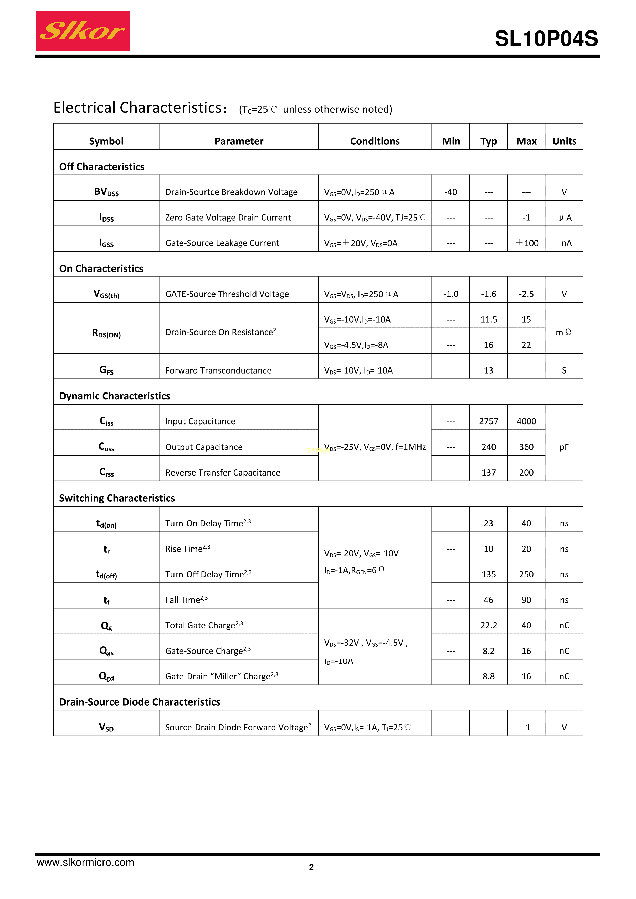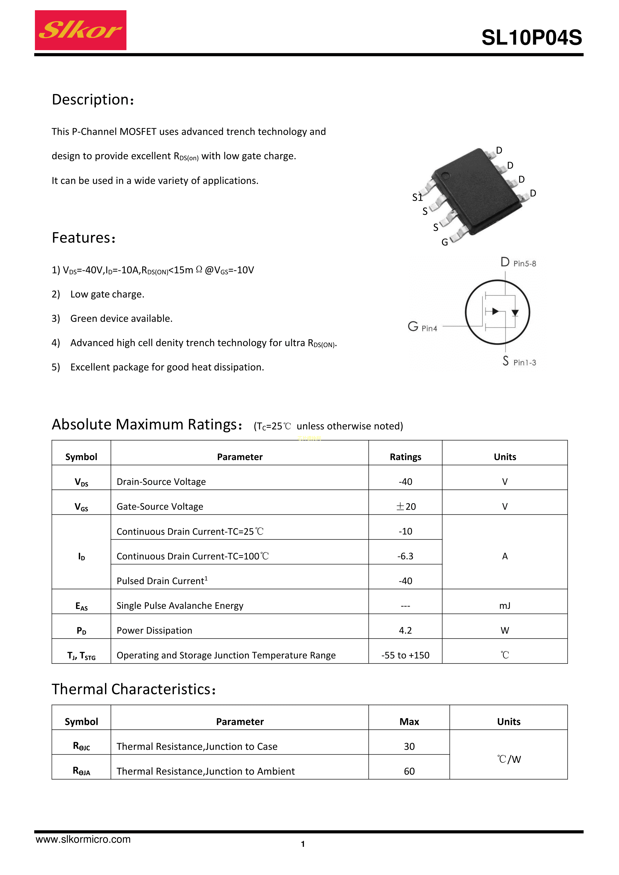 SL10P04S数据手册SOP-8封装Slkor(萨科微)PDF规格书,中英文下载