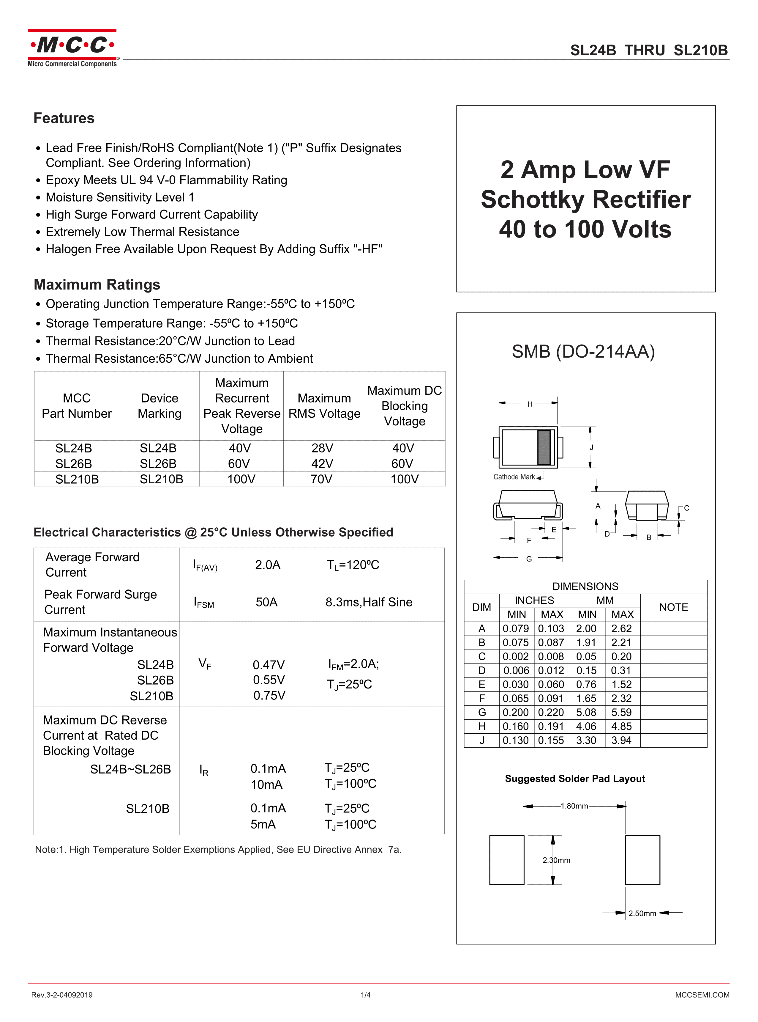 SL210B-TP数据手册SMB封装MCC(美微科)PDF规格书,中英文下载