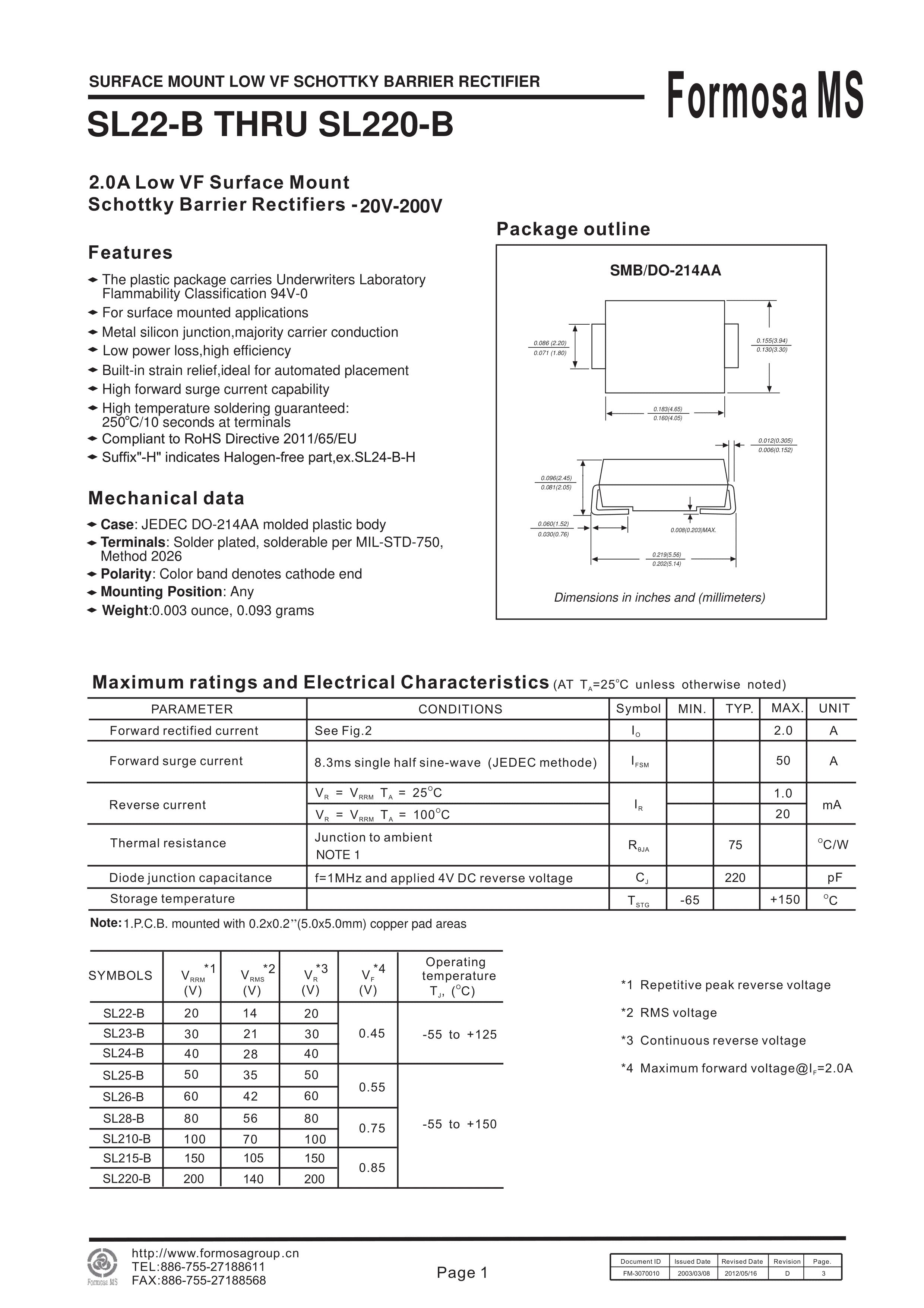 SL24-B数据手册SMB封装FMS(台湾美丽微)PDF规格书,中英文下载