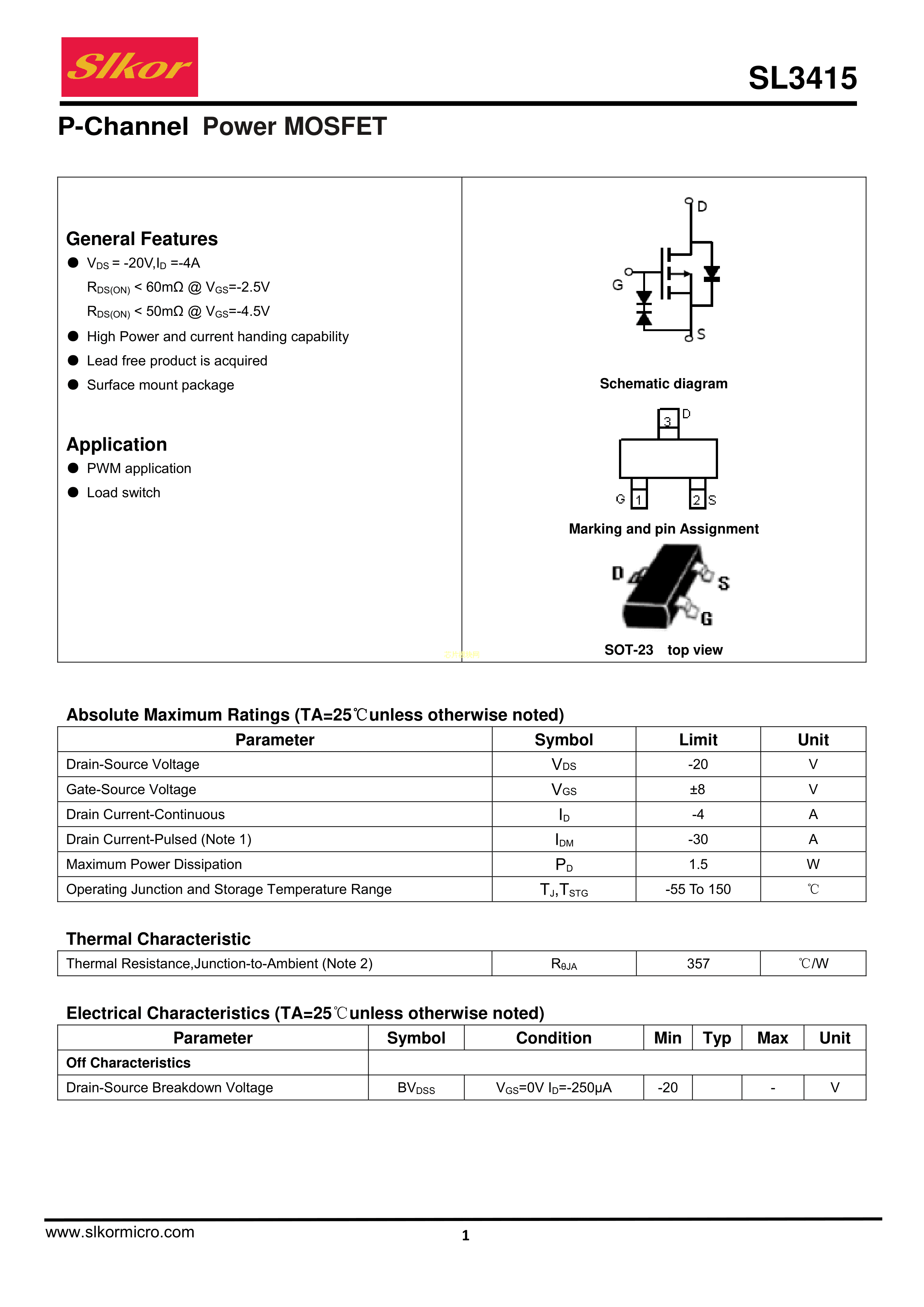 SL3415数据手册SOT-23(SOT-23-3)封装Slkor(萨科微)PDF规格书,中英文下载