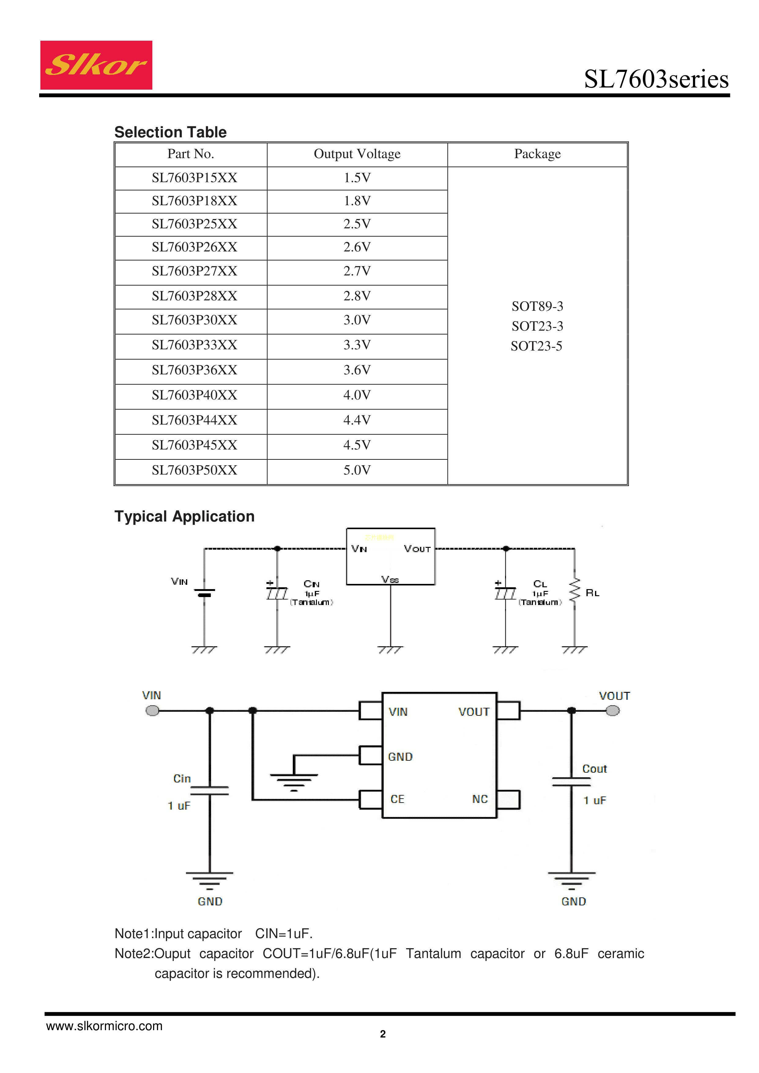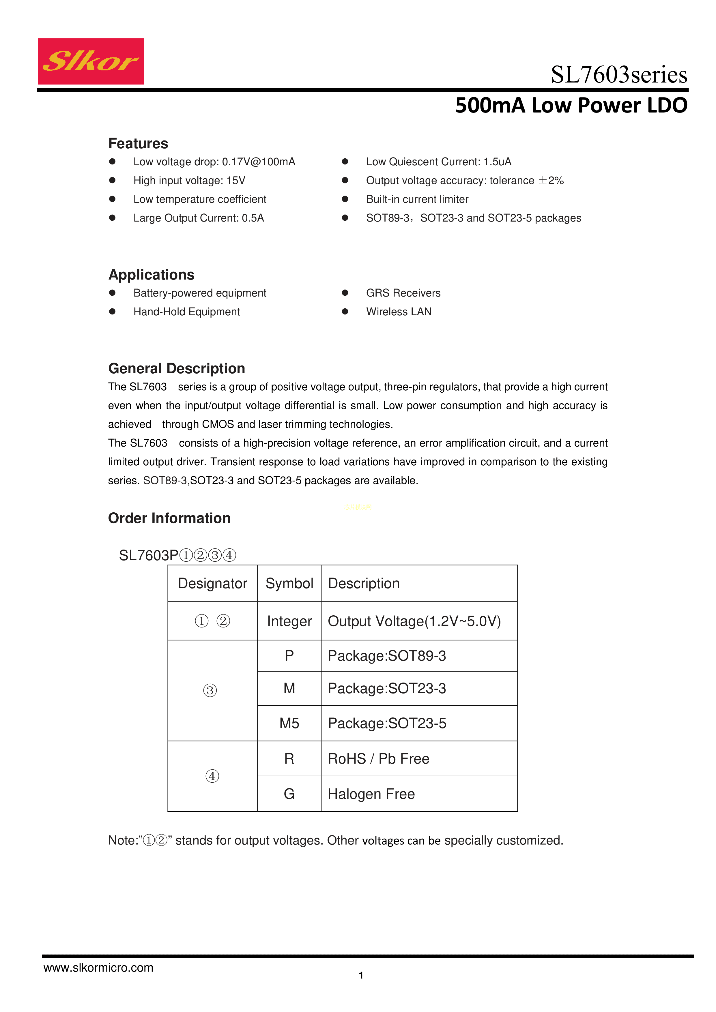 SL7603P50PR数据手册SOT-89-3封装Slkor(萨科微)PDF规格书,中英文下载