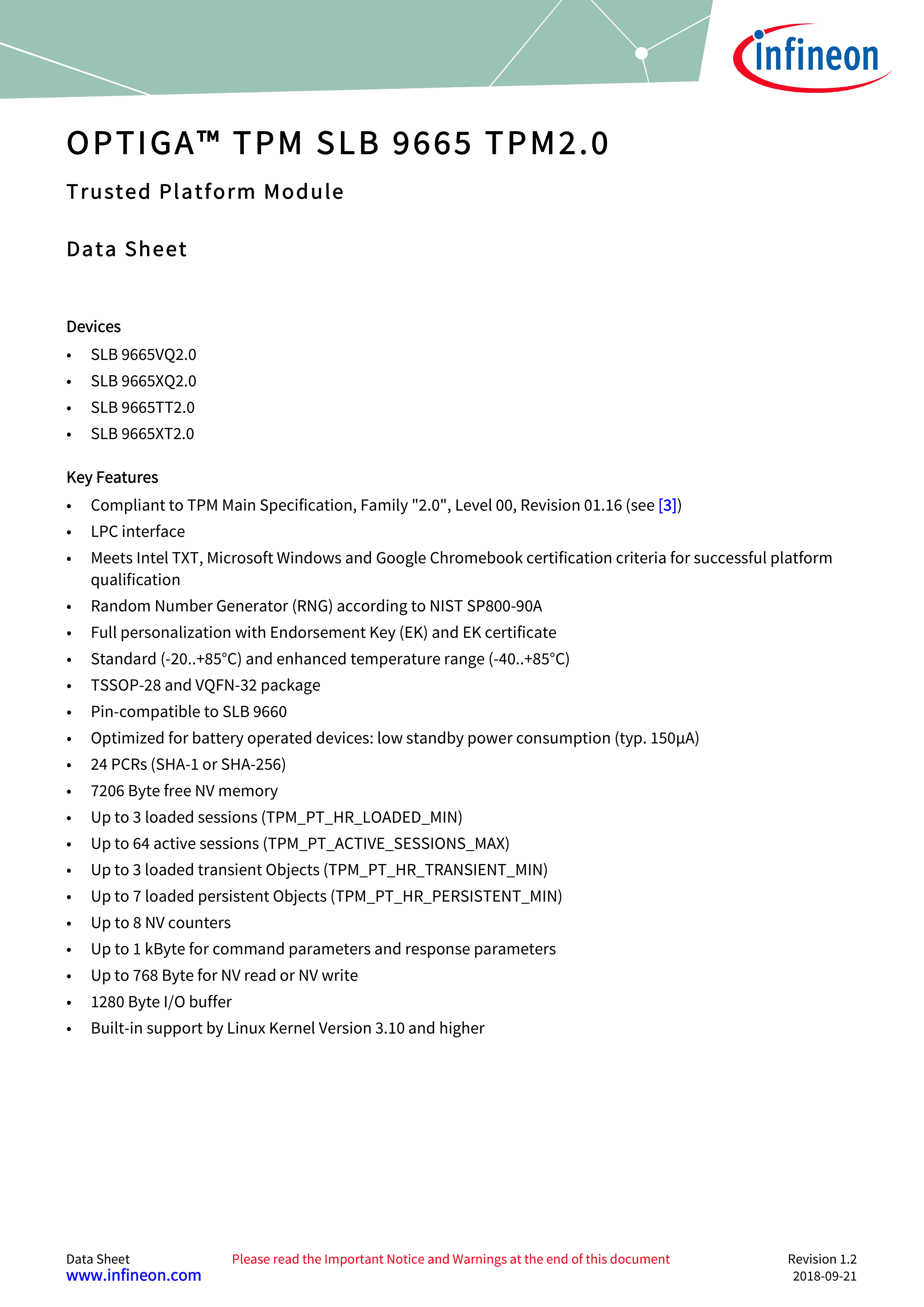 SLB 9665TT2.0 FW5.61数据手册PG-TSSOP-28-2封装Infineon(英飞