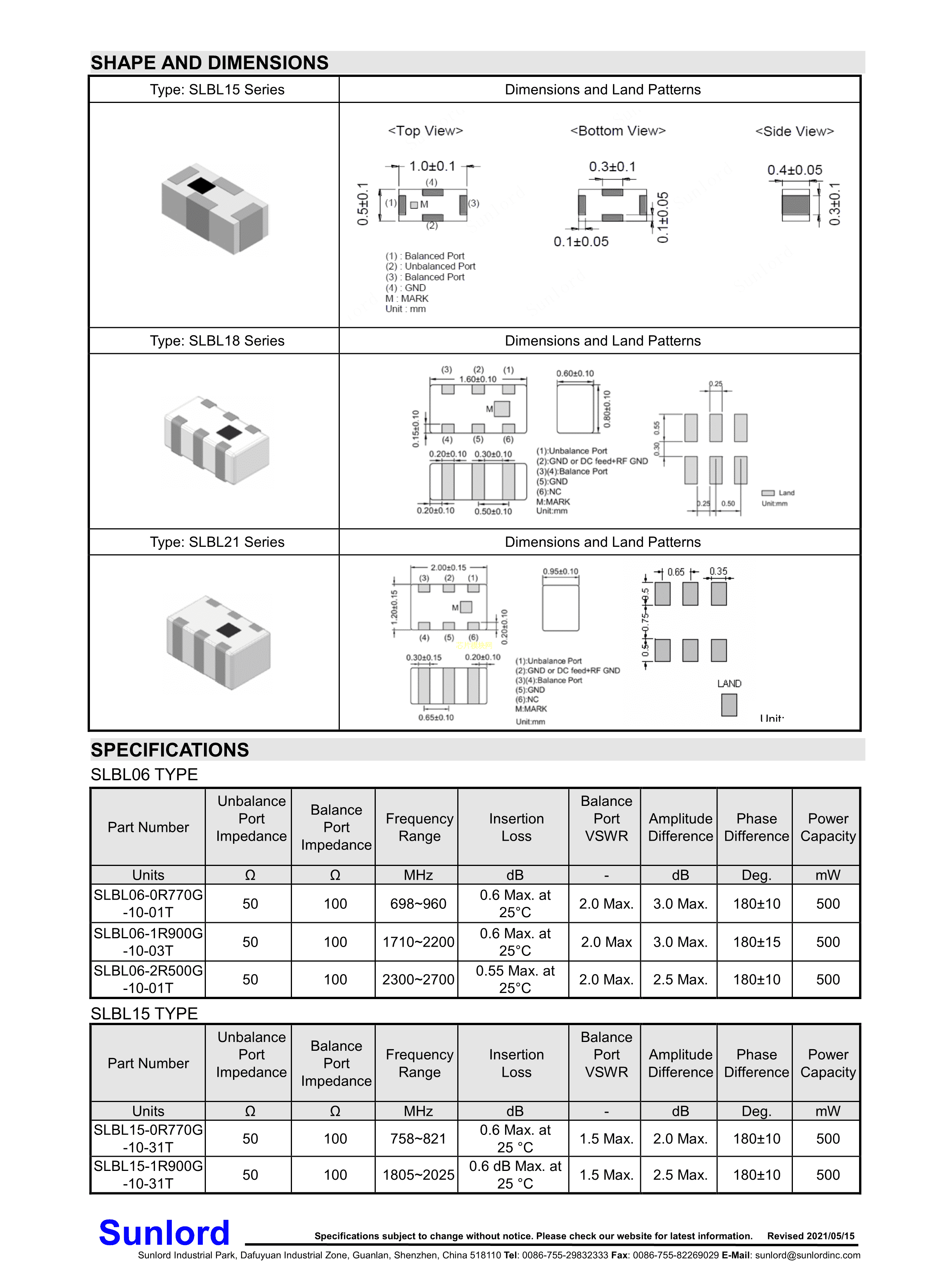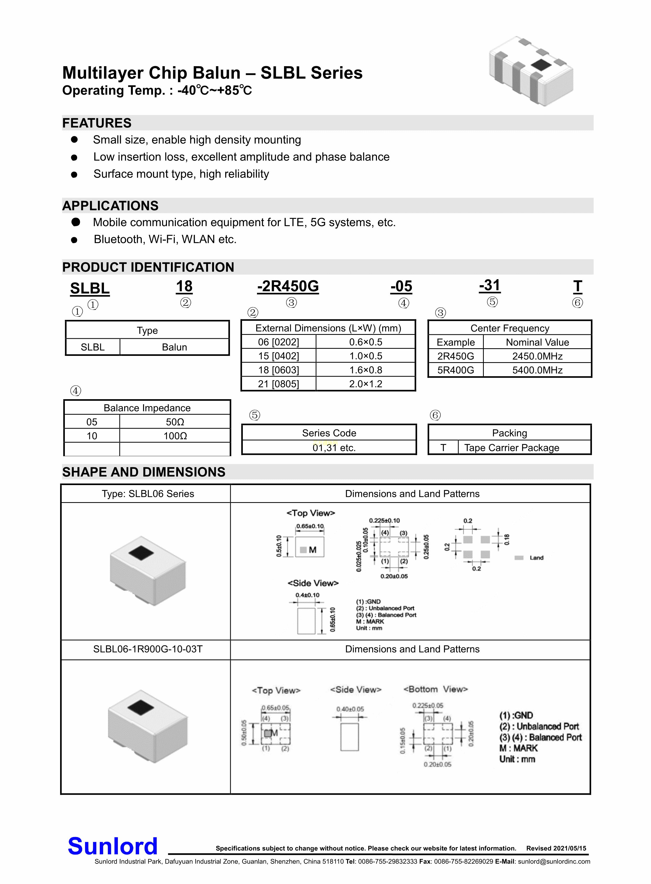 SLBL21-2R400G-05-01T数据手册2x1.2mm封装Sunlord(顺络)PDF规格书