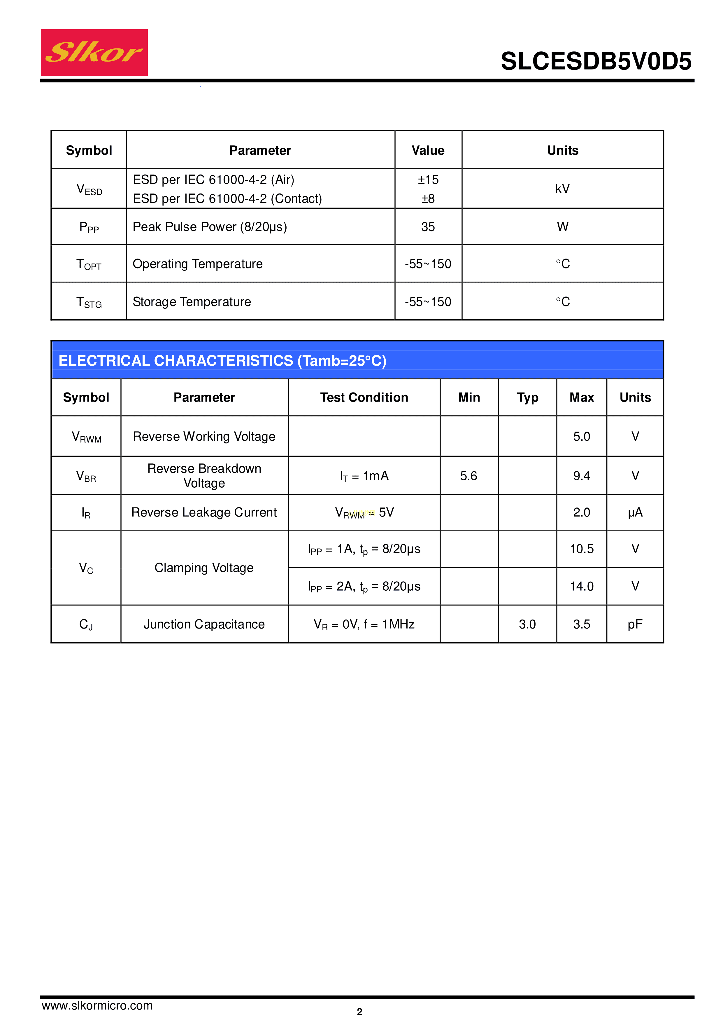 SLCESDB5V0D5数据手册SOD-523封装Slkor(萨科微)PDF规格书,中英文下载