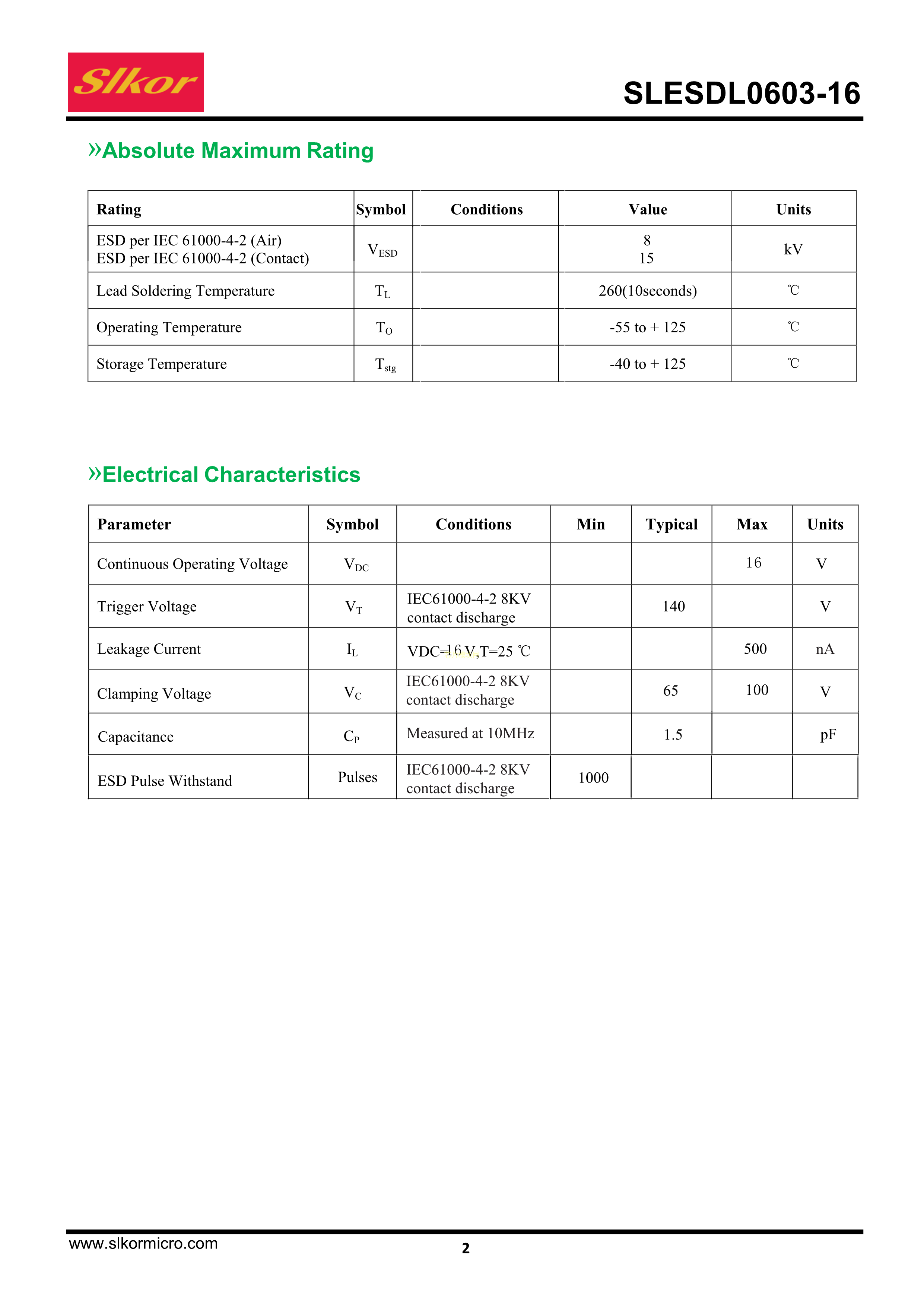 SLESDL0603-16数据手册0603封装Slkor(萨科微)PDF规格书,中英文下载