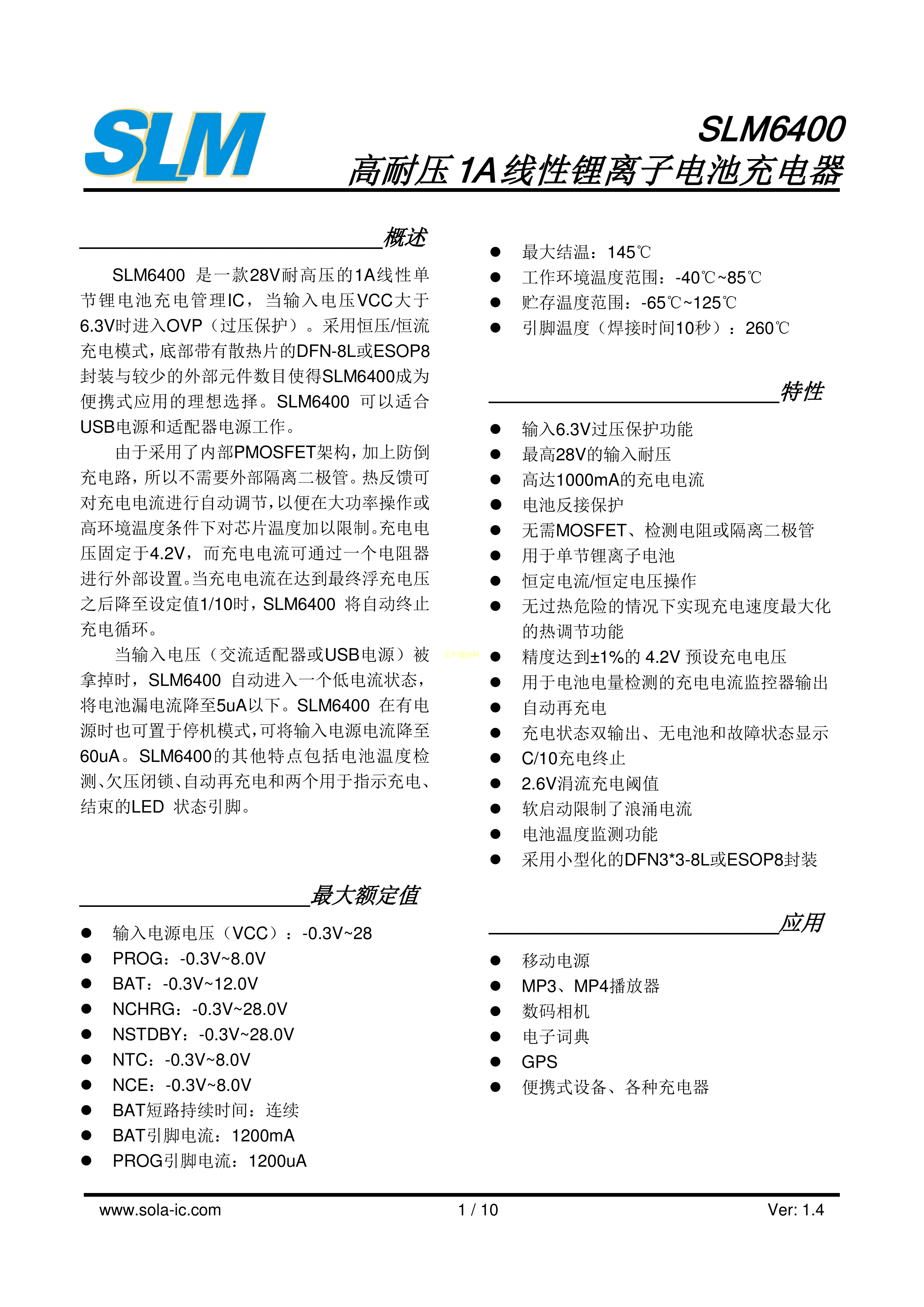 SLM6400数据手册DFN-8封装无锡松朗微PDF规格书,中英文下载
