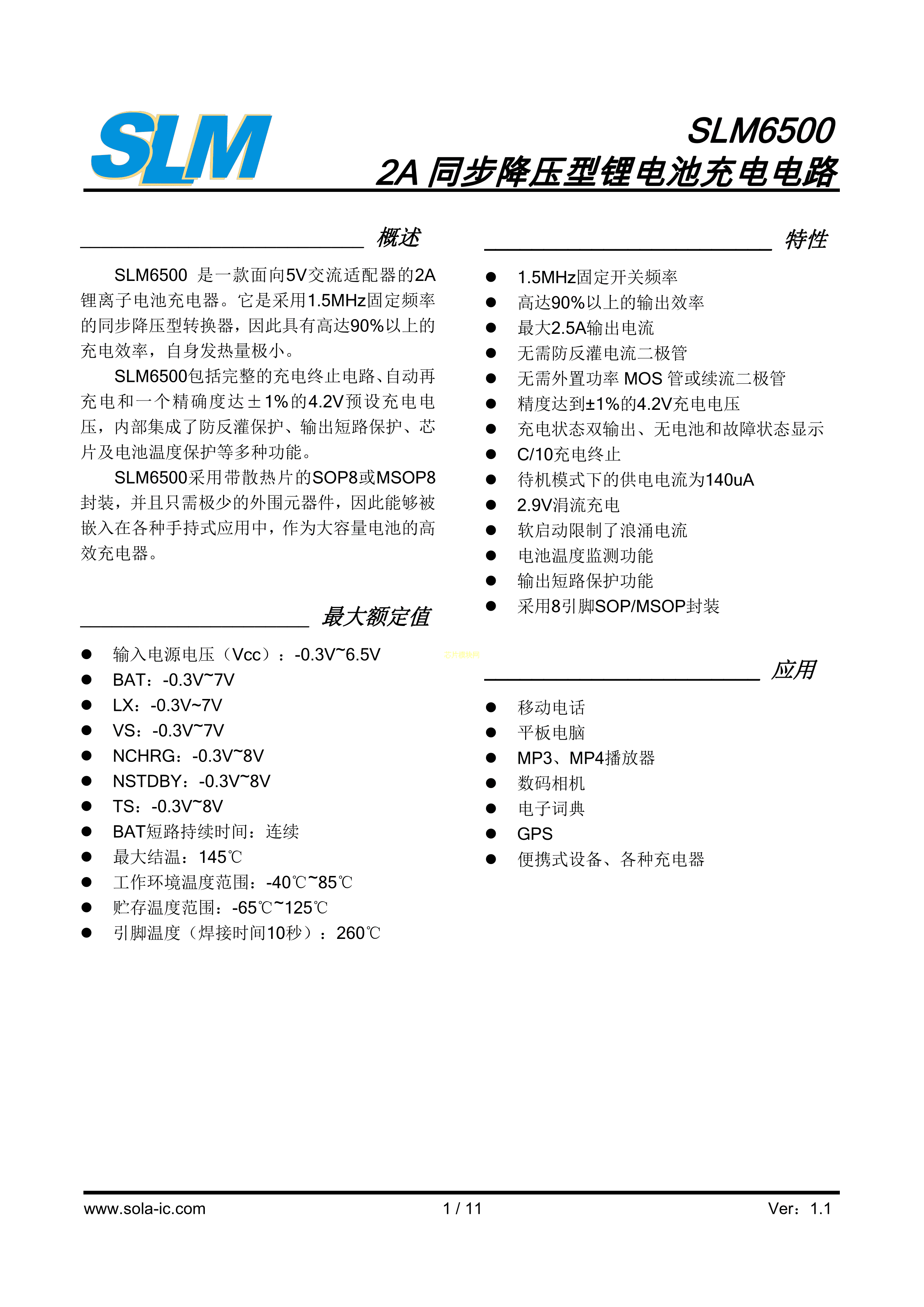 SLM6500数据手册SOP-8EP_150mil封装无锡松朗微PDF规格书,中英文下载