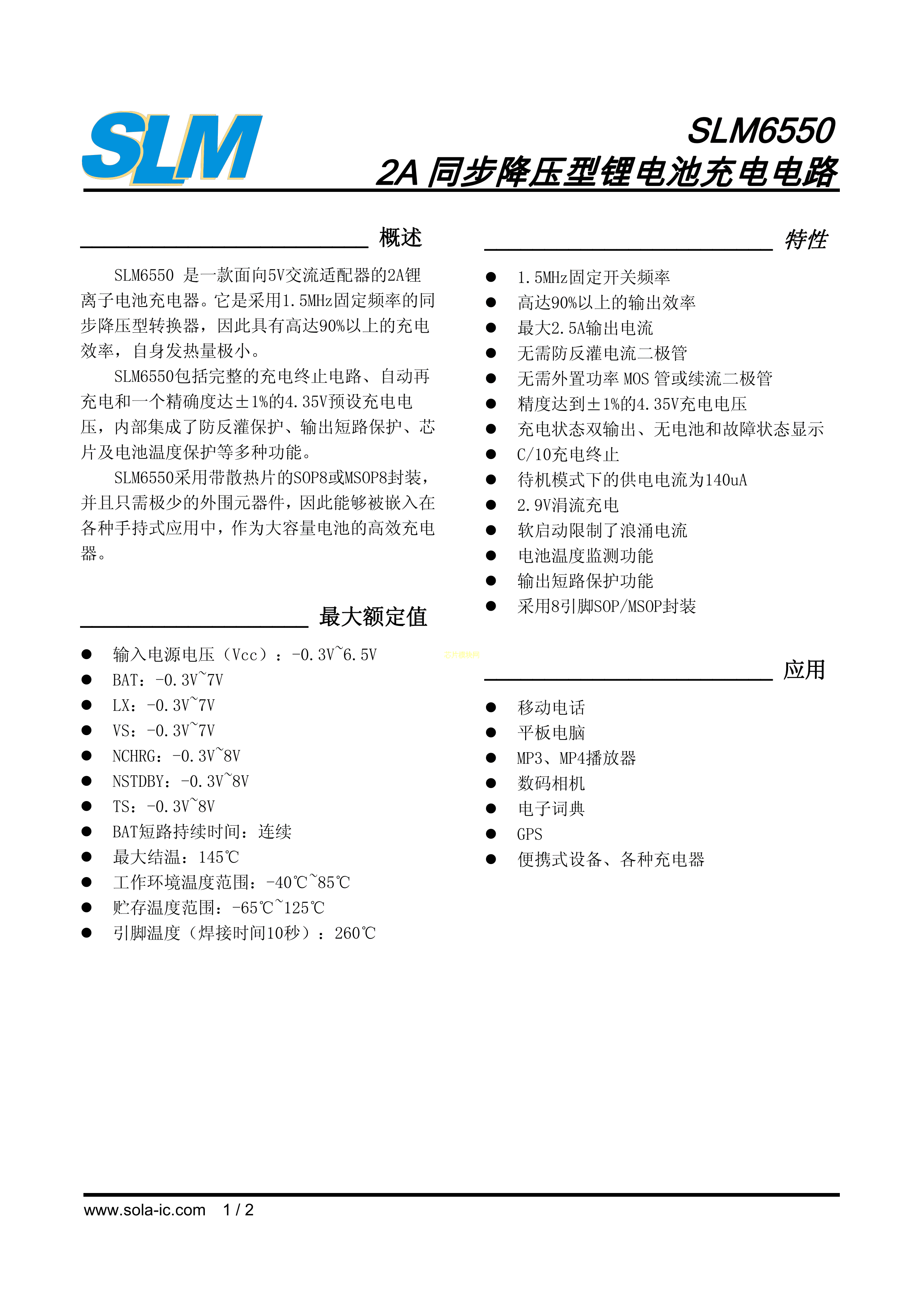SLM6550PDF规格书,中英文下载