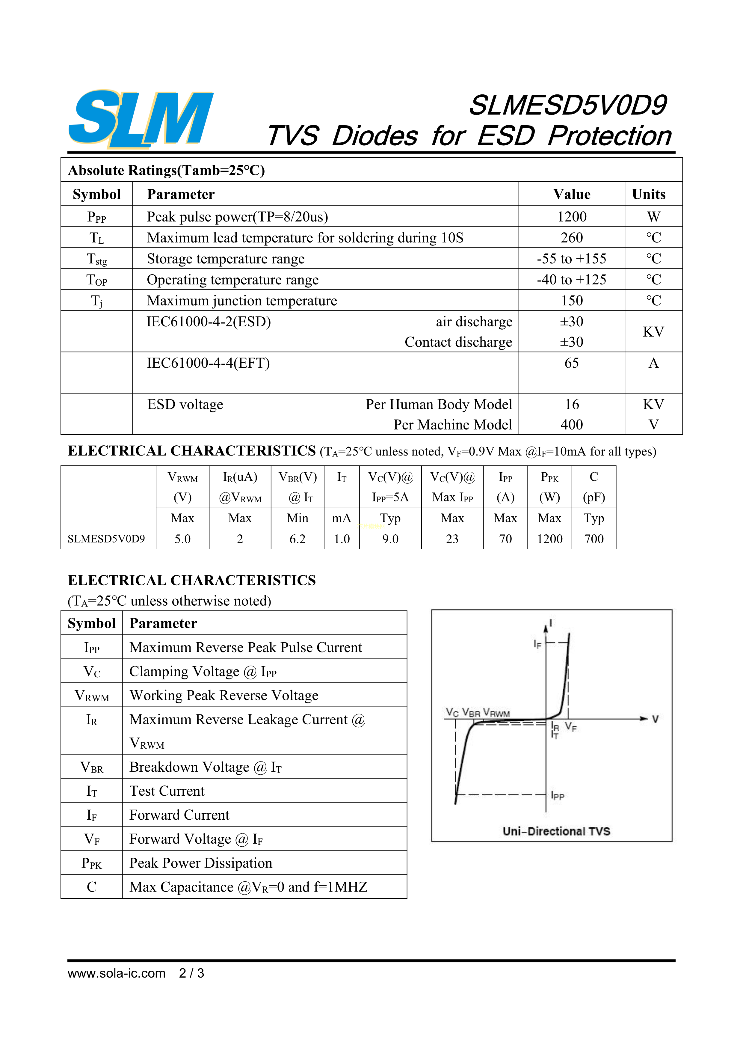 SLMESD5V0D9数据手册SOD-123封装无锡松朗微PDF规格书,中英文下载