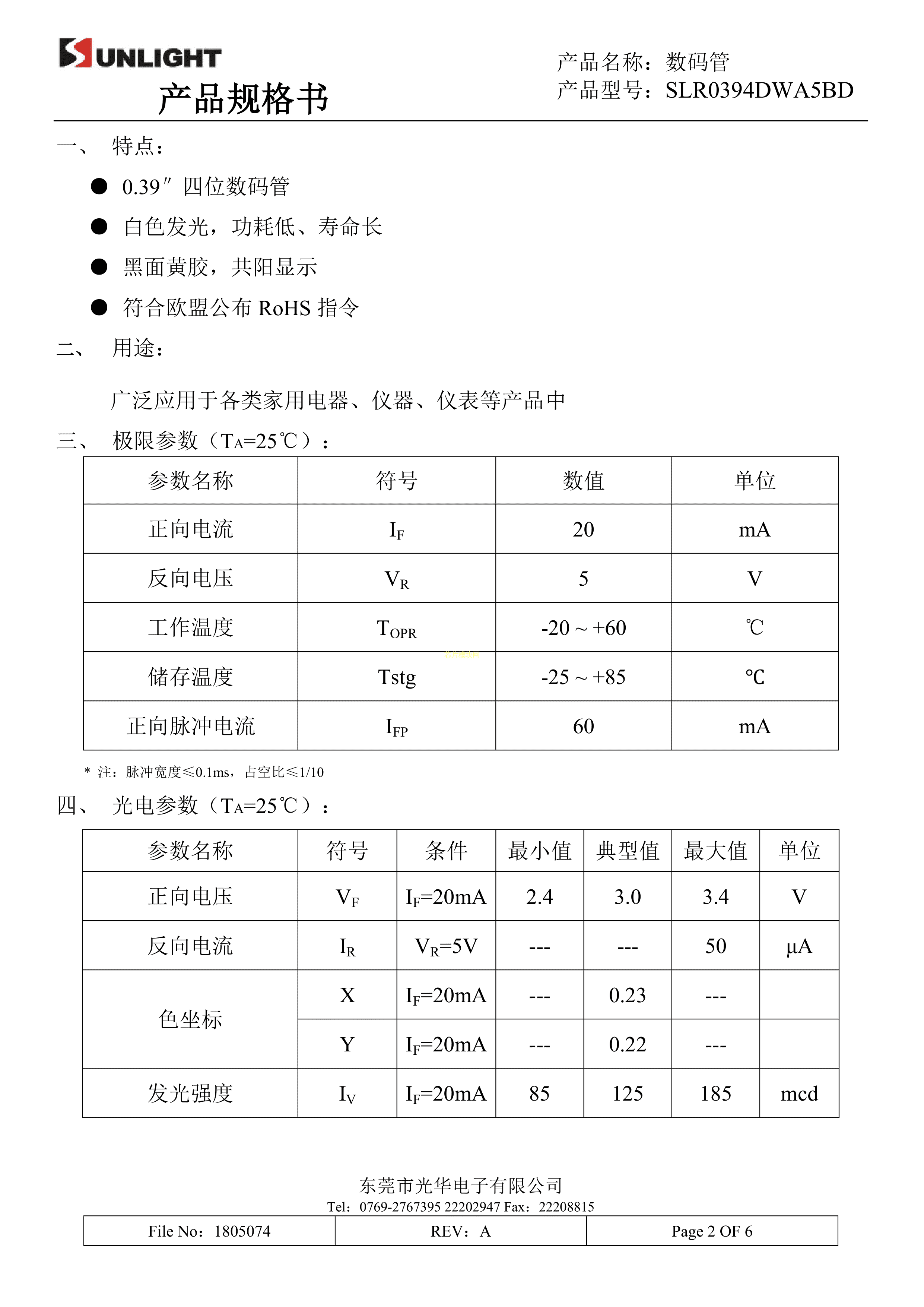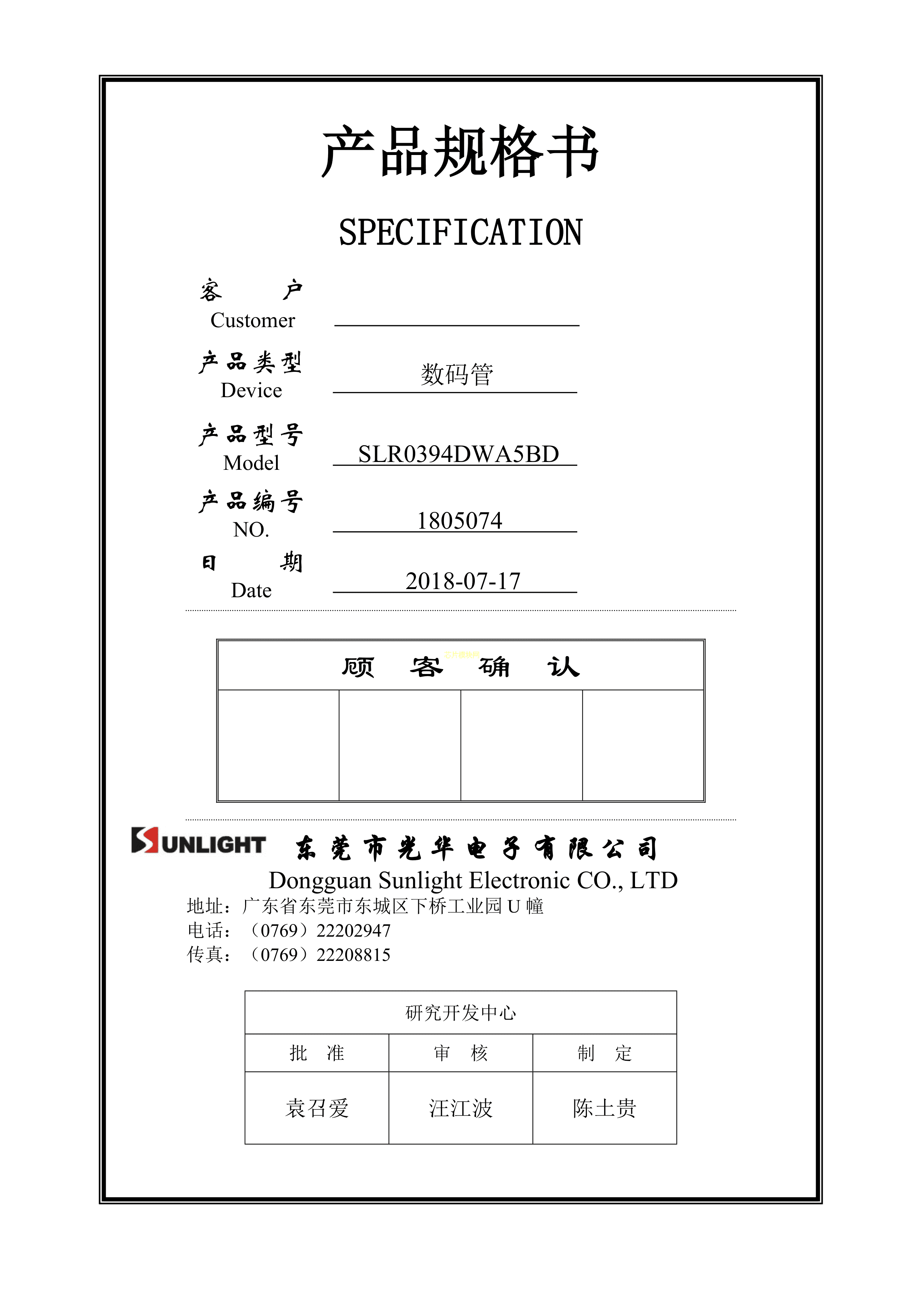 SLR0394DWA5BD数据手册插件封装SUNLIGHT(光华)PDF规格书,中英文下载