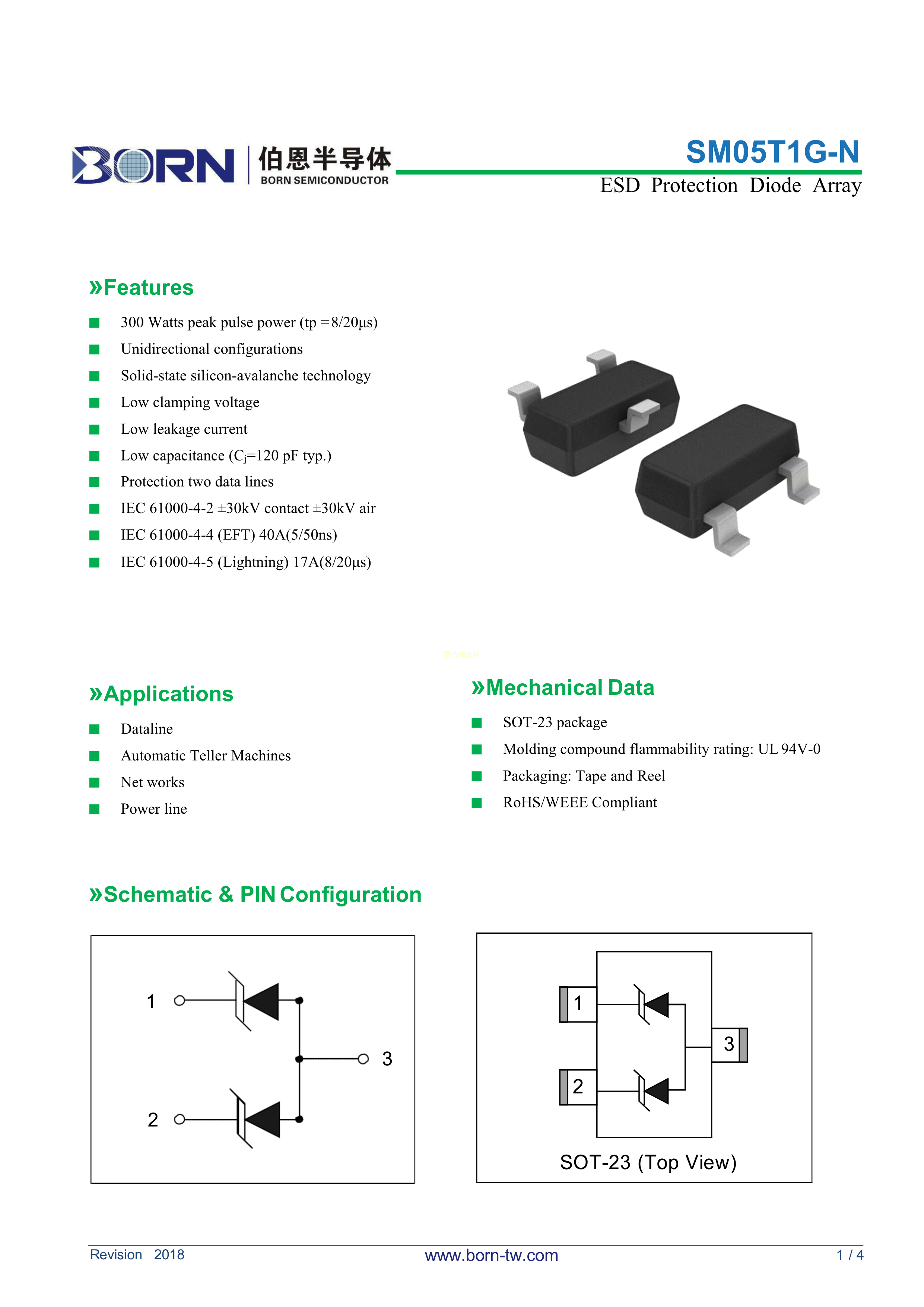 SM05T1G-N数据手册SOT-23封装BORN(伯恩半导体)PDF规格书,中英文下载