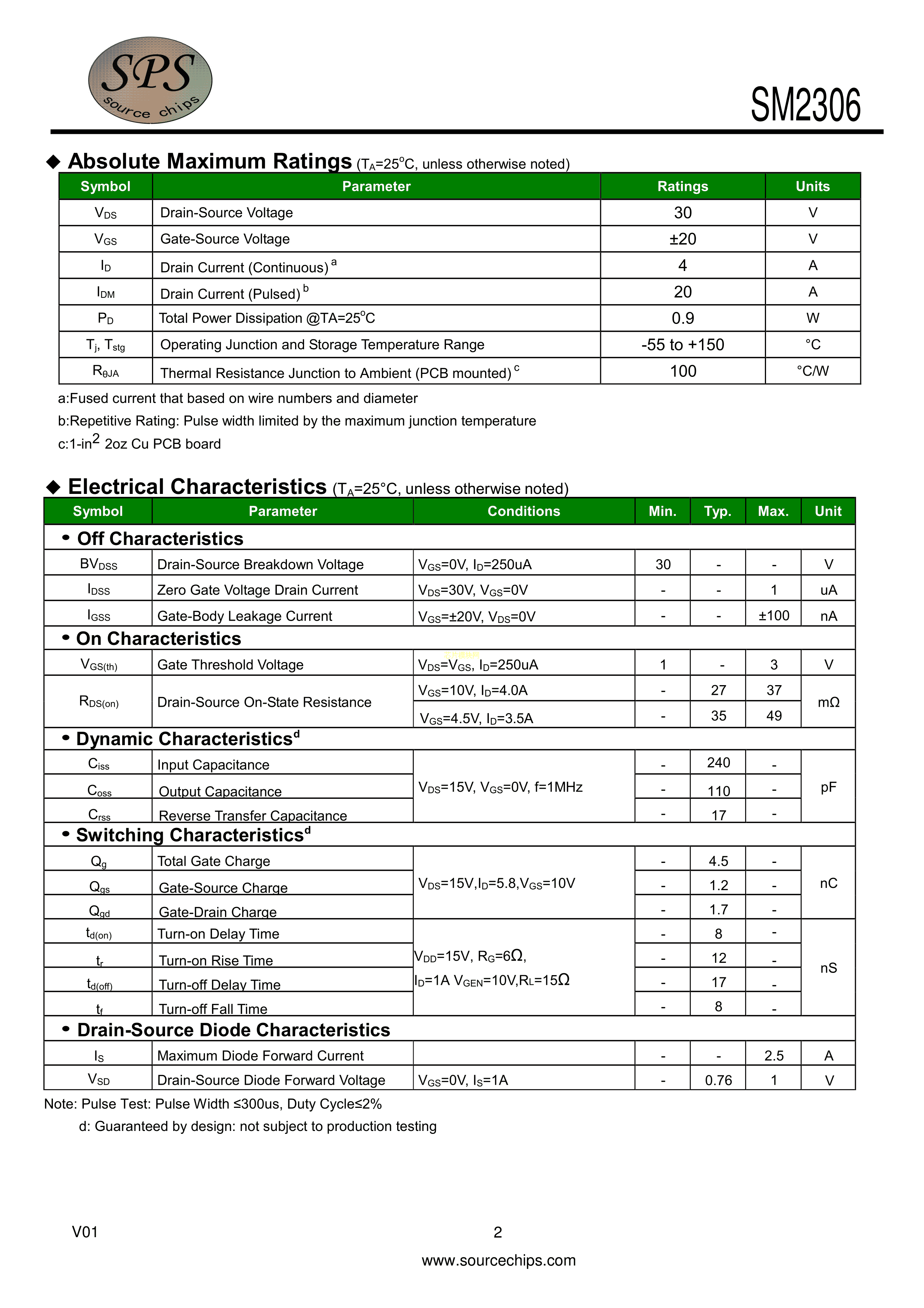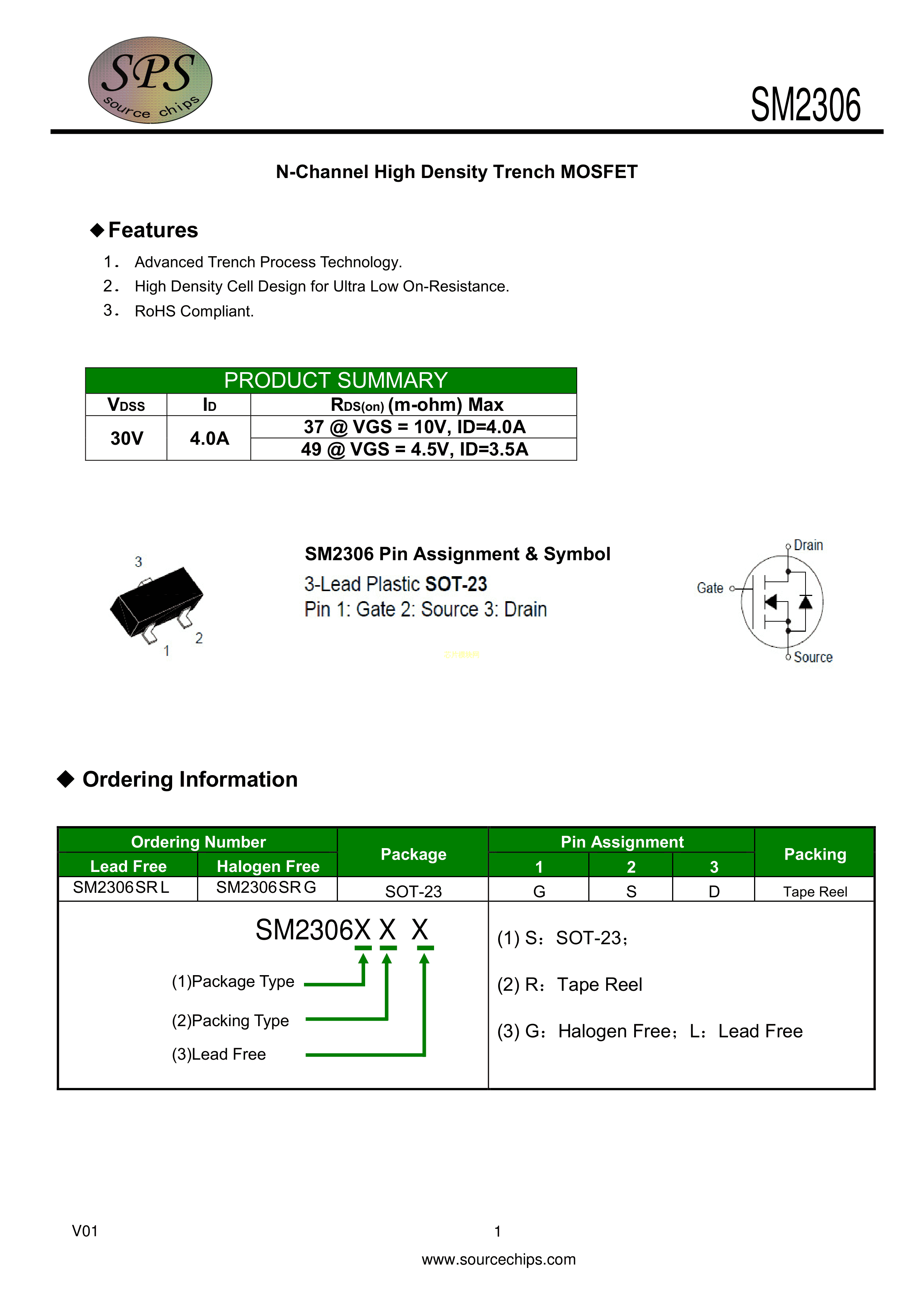SM2306SRL数据手册SOT-23(SOT-23-3)封装SPS(美国源芯)PDF规格书,中英文