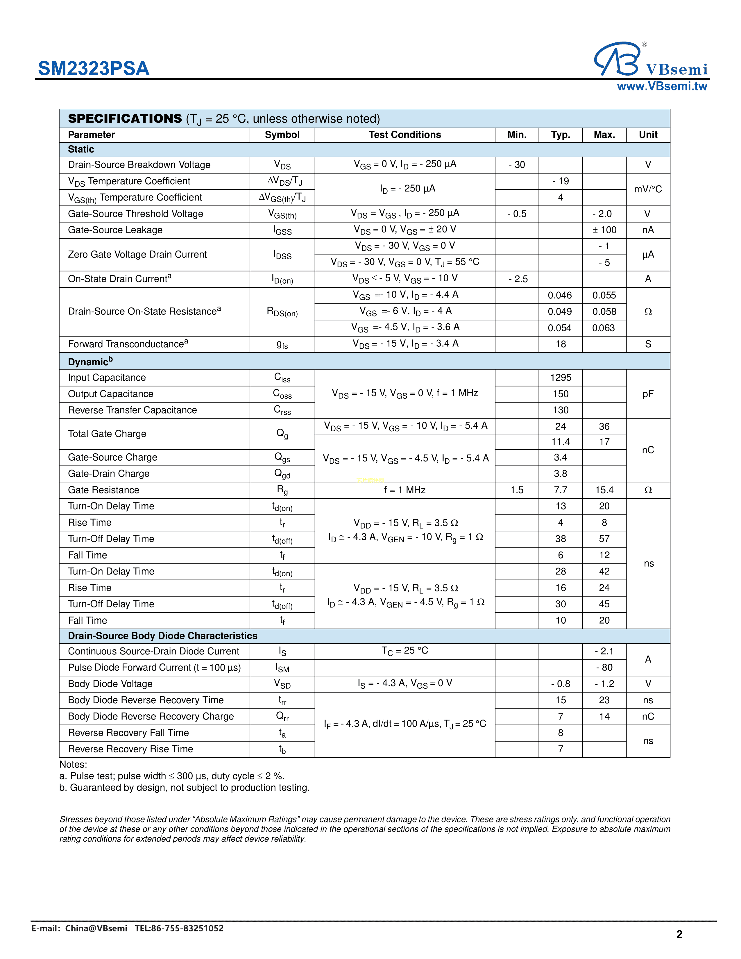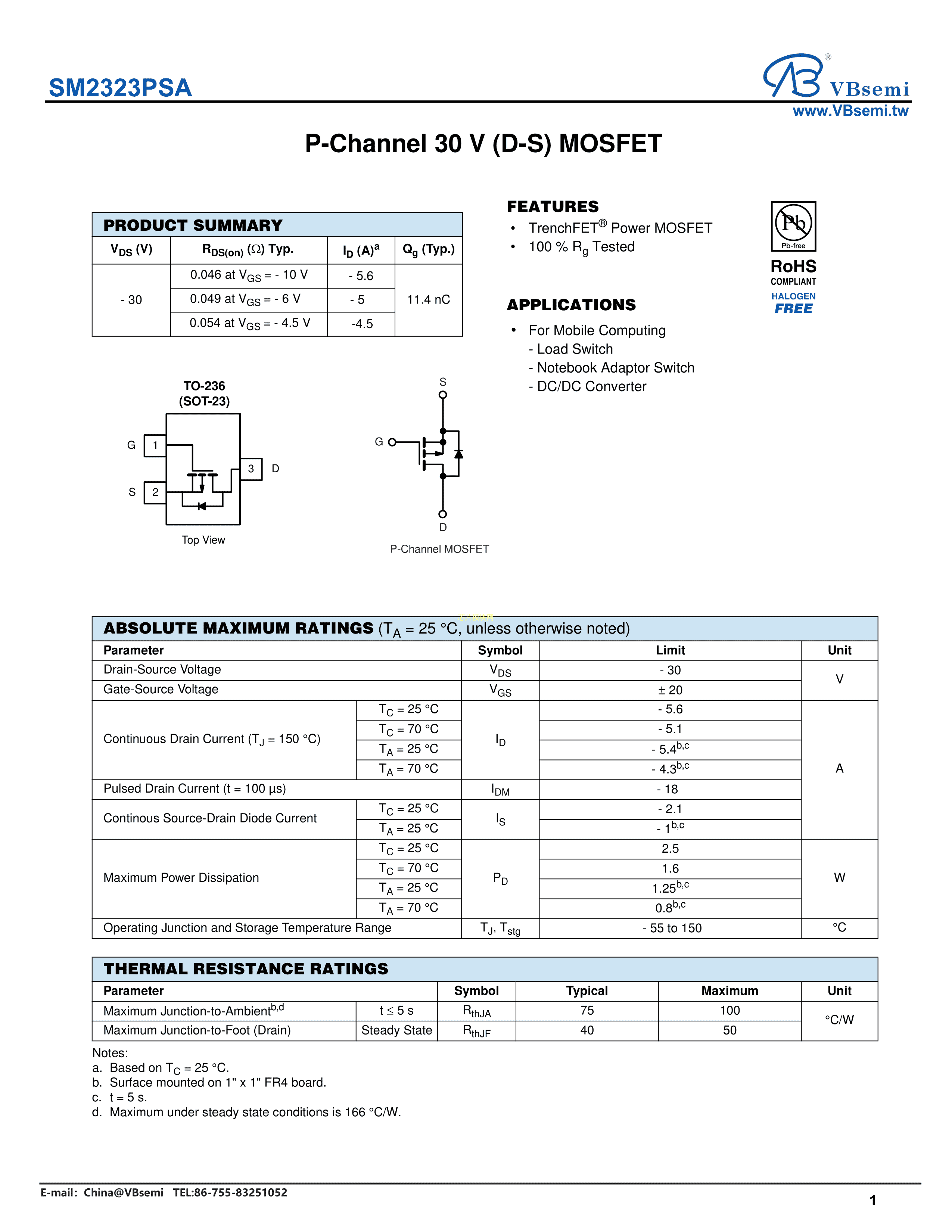 SM2323PSA数据手册SOT-23封装VBsemi(台湾微碧)PDF规格书,中英文下载