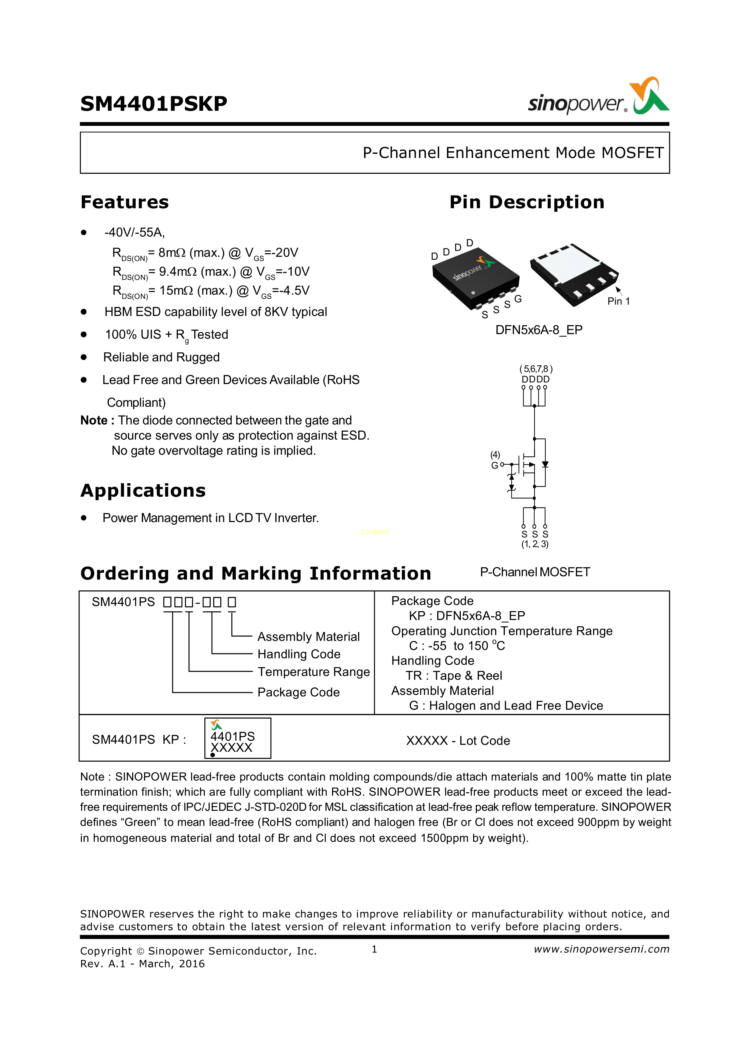 SM4401PSKPC-TRG数据手册DFN5x6-8封装Sinopower(大中)PDF规格书,中