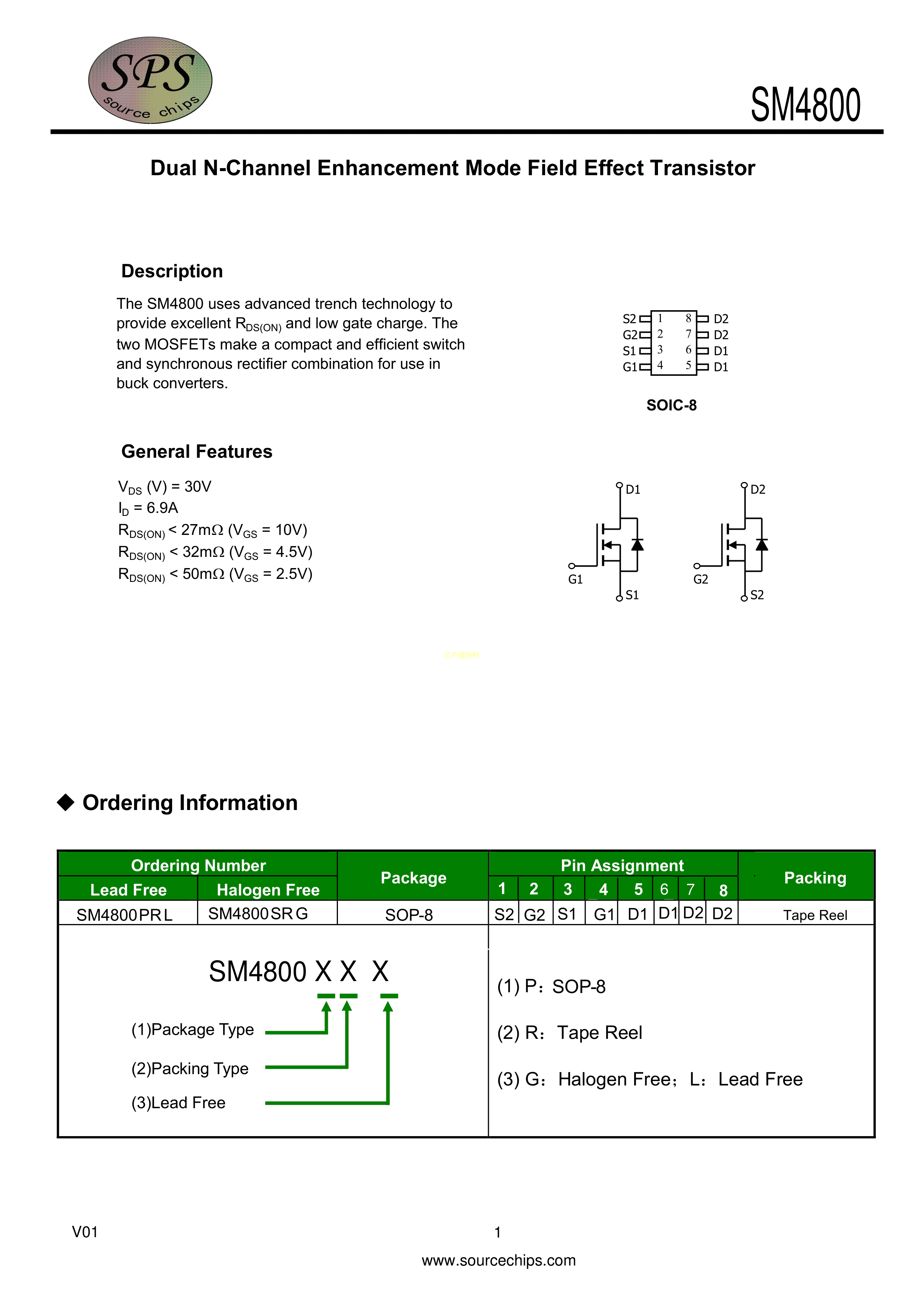 SM4800PRL数据手册SOP-8_150mil封装SPS(美国源芯)PDF规格书,中英文下载