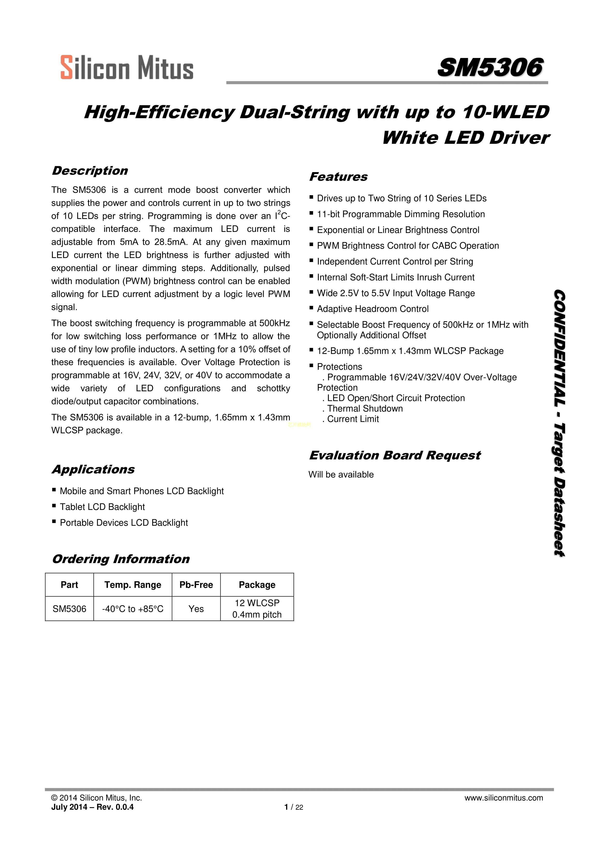 SM5306数据手册WLCSP-12封装Siliconmitus(矽致微)PDF规格书,中英文下载