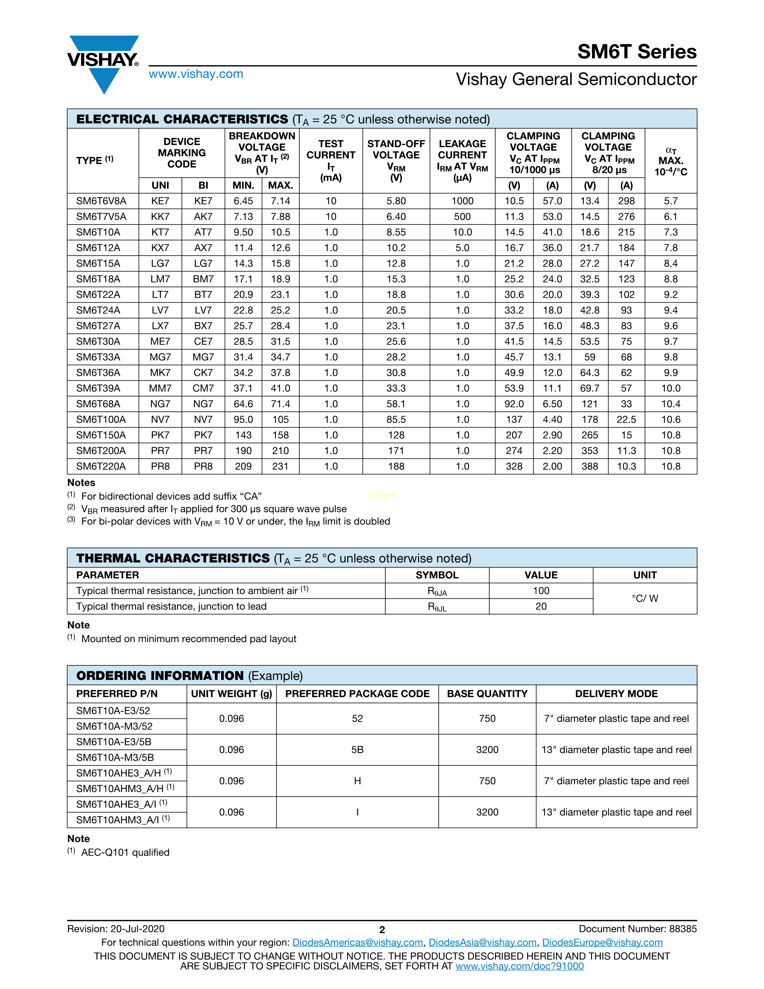 SM6T10A-M3-52数据手册DO-214AA(SMBJ)封装VISHAY(威世)PDF规格书,