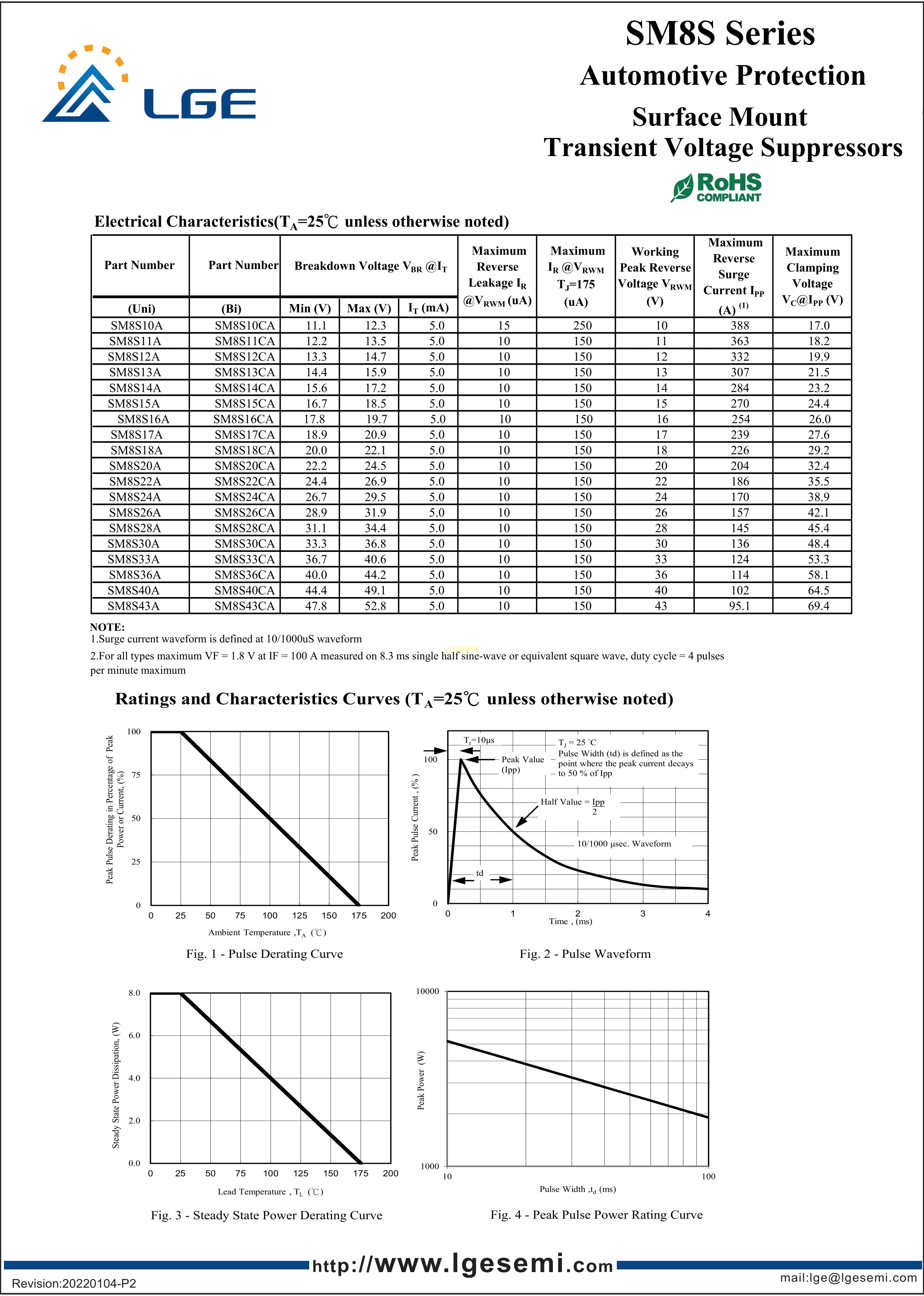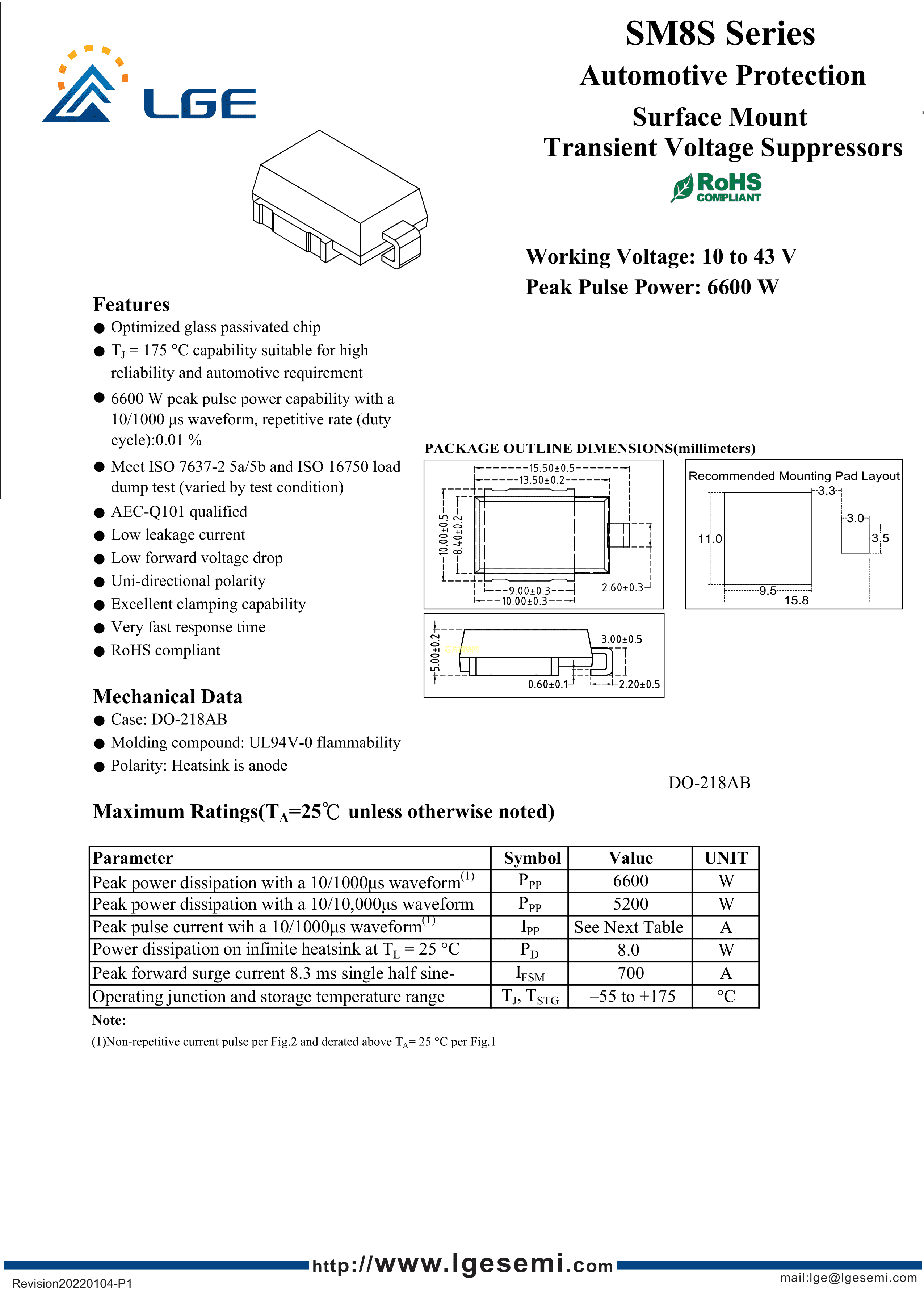 SM8S30CA数据手册DO-218AB封装LGE(鲁光)PDF规格书,中英文下载