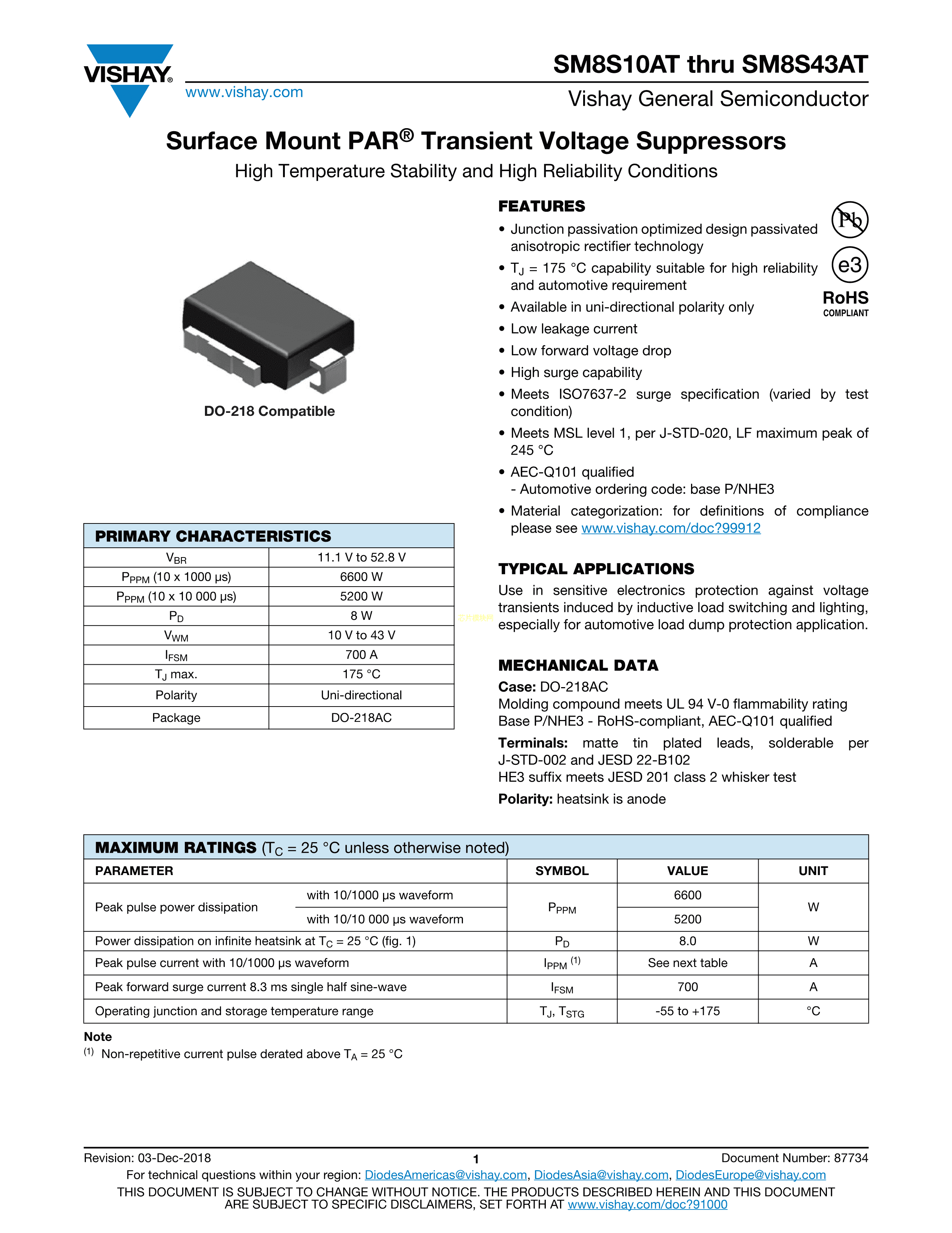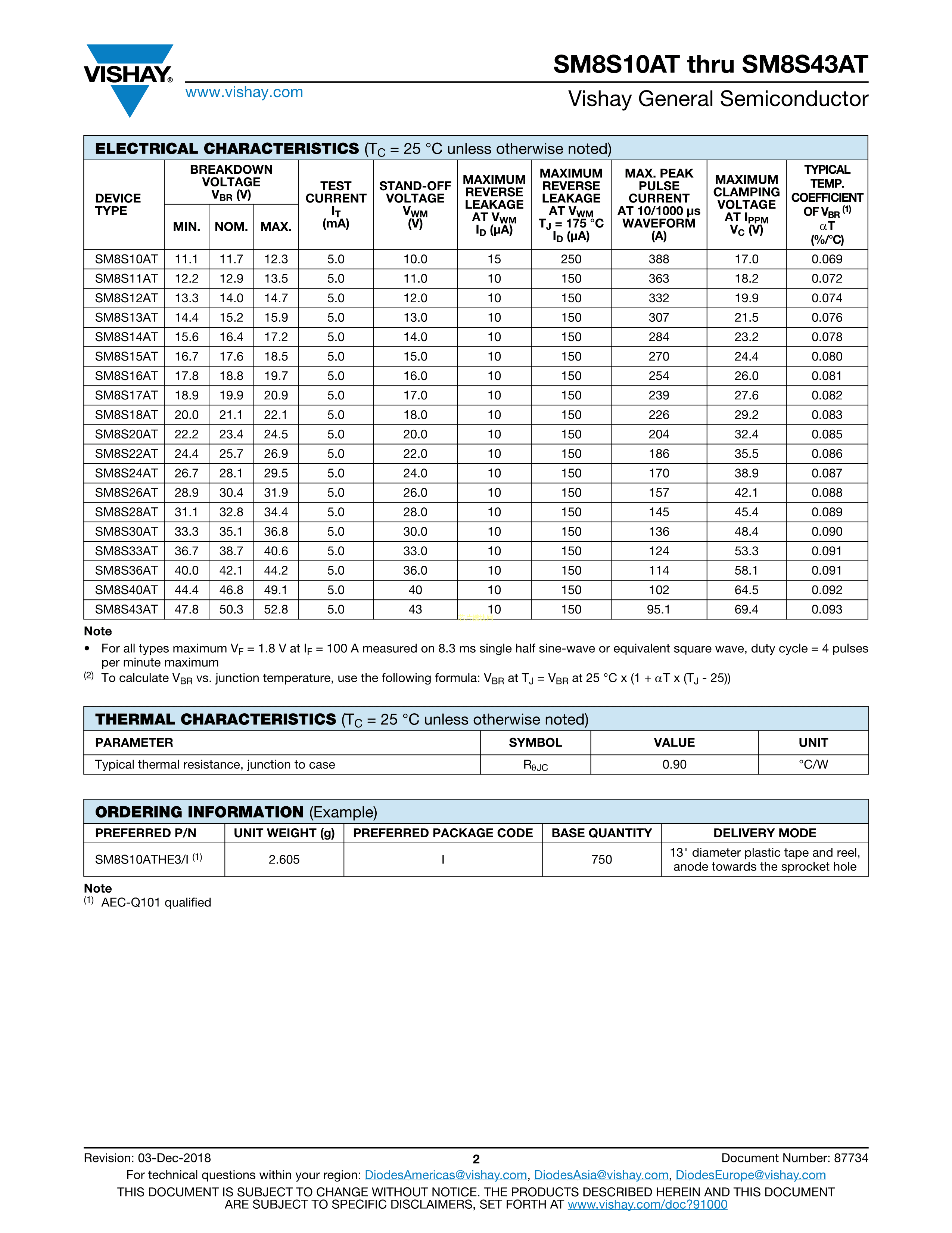 SM8S40ATHE3-I数据手册DO-218AC封装VISHAY(威世)PDF规格书,中英文下载