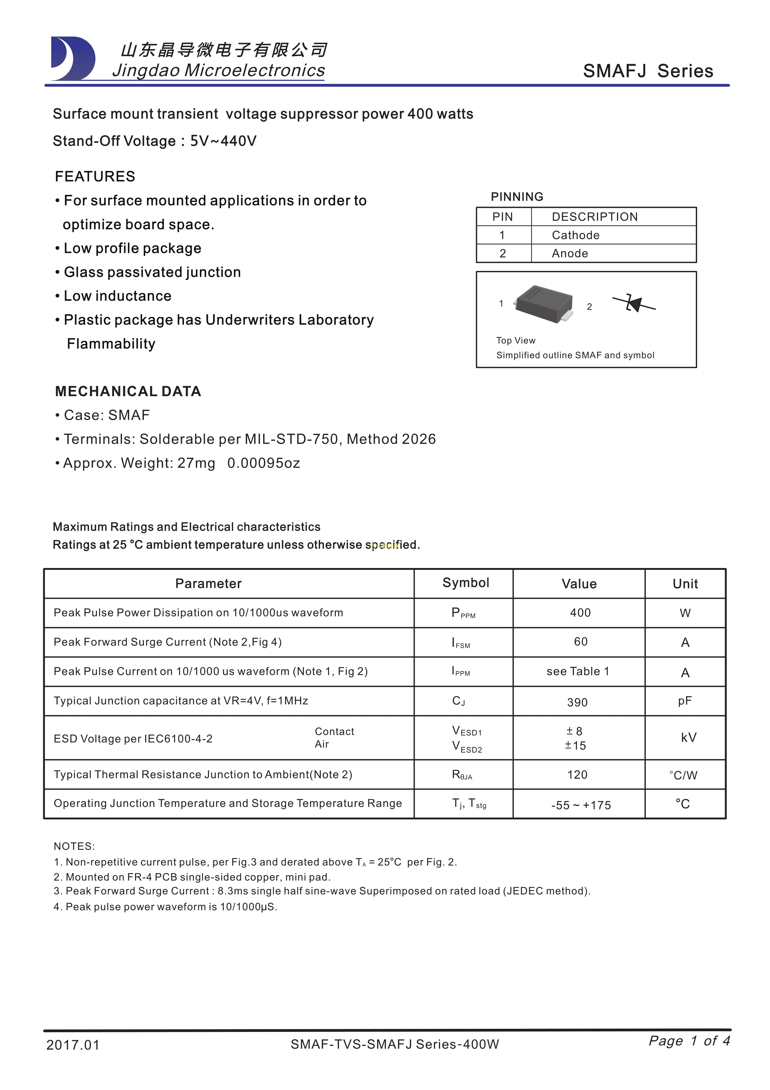SMAFJ22CA数据手册SMAF封装晶导微电子PDF规格书,中英文下载