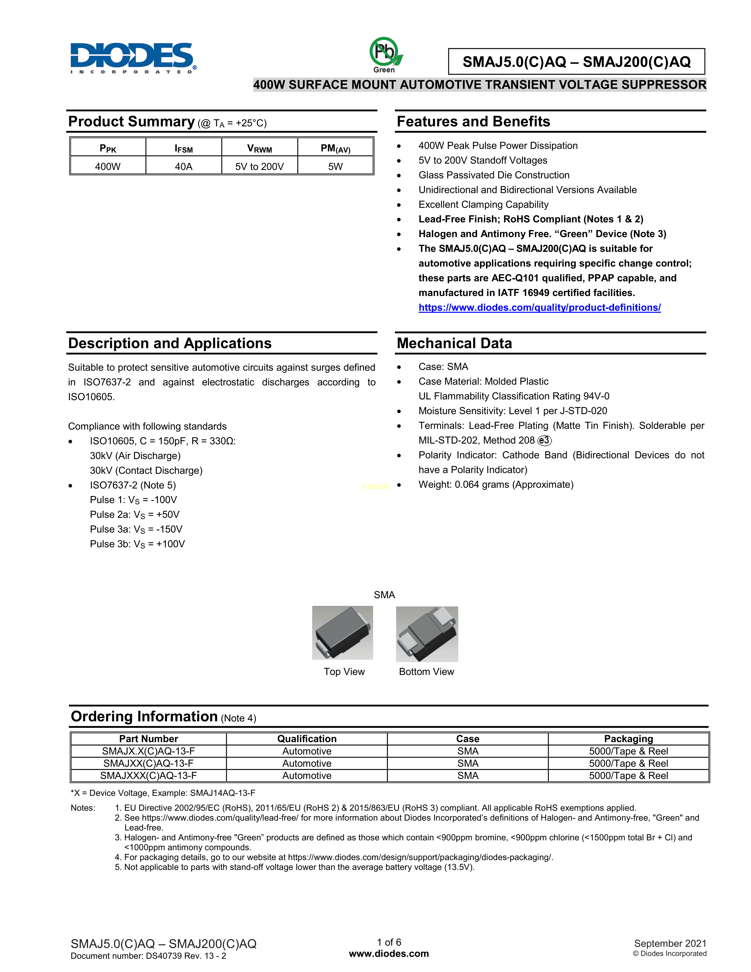SMAJ15CAQ-13-F数据手册SMA封装DIODES(美台)PDF规格书,中英文下载