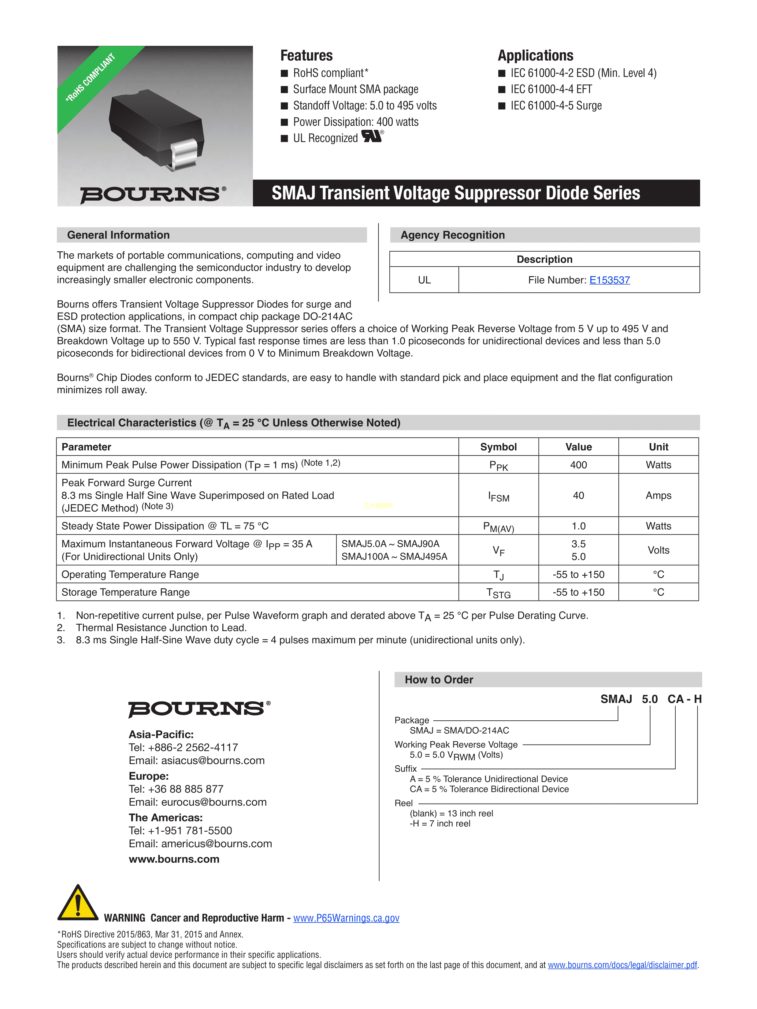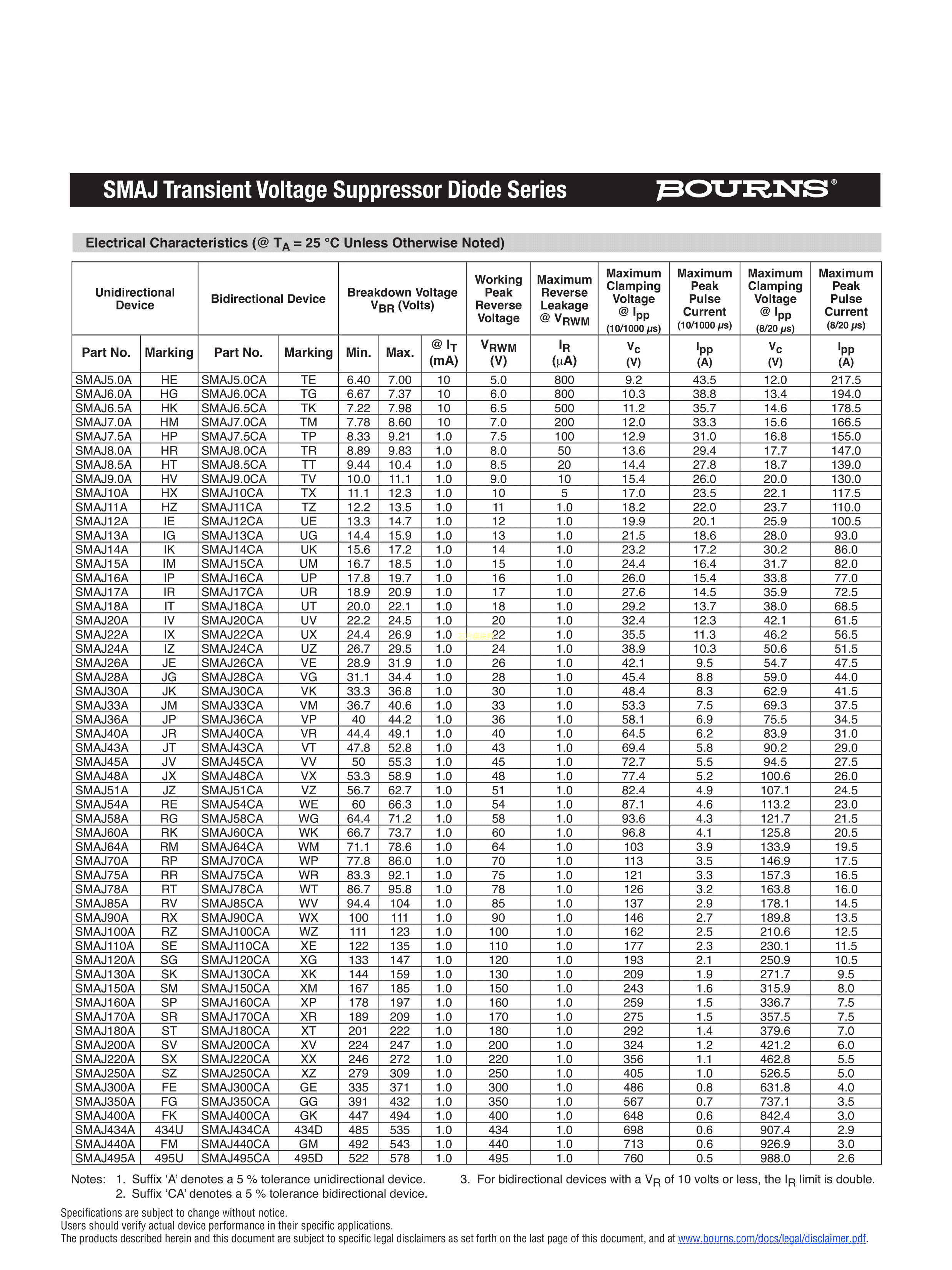 SMAJ22A数据手册SMA(DO-214AC)封装BOURNSPDF规格书,中英文下载