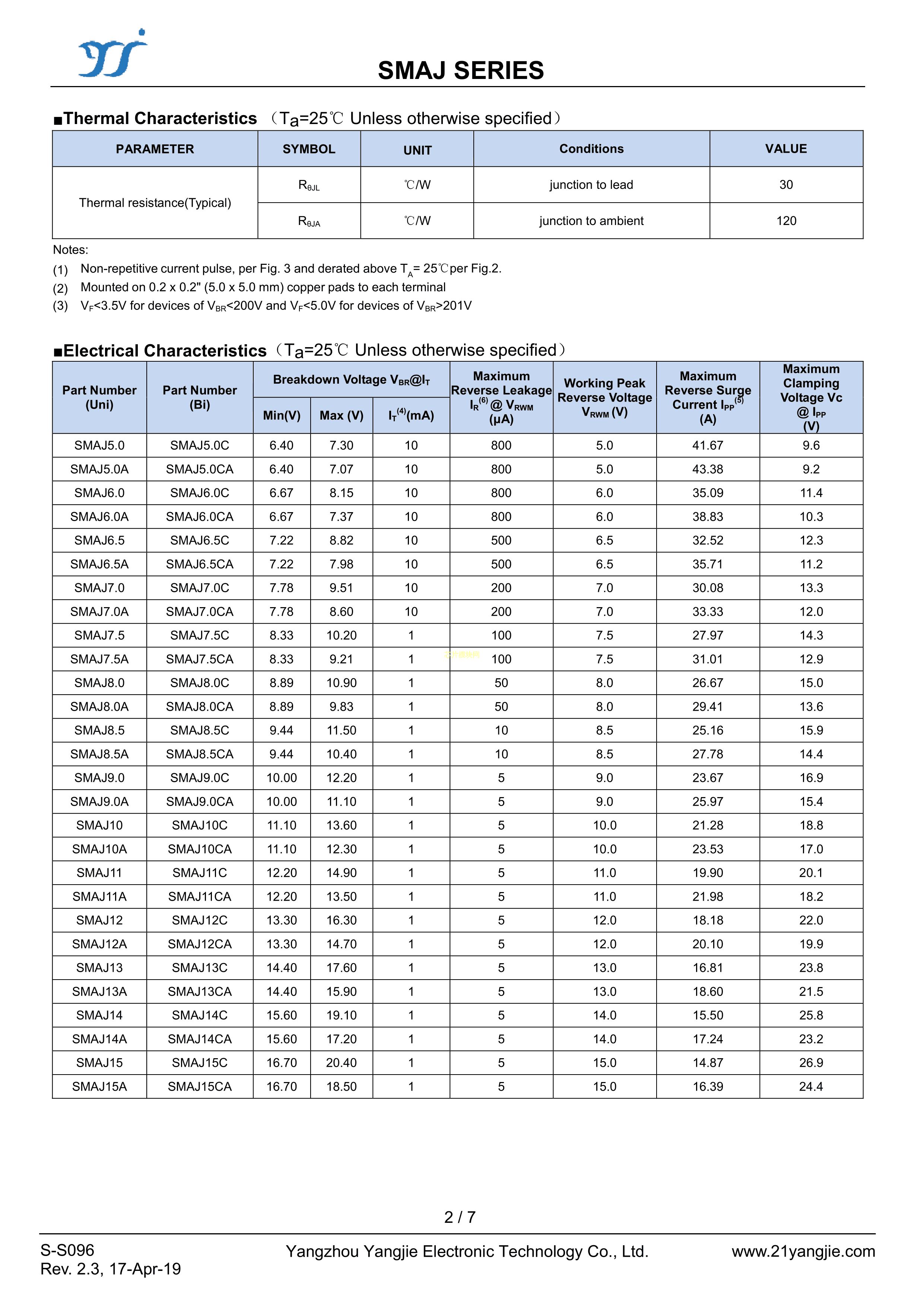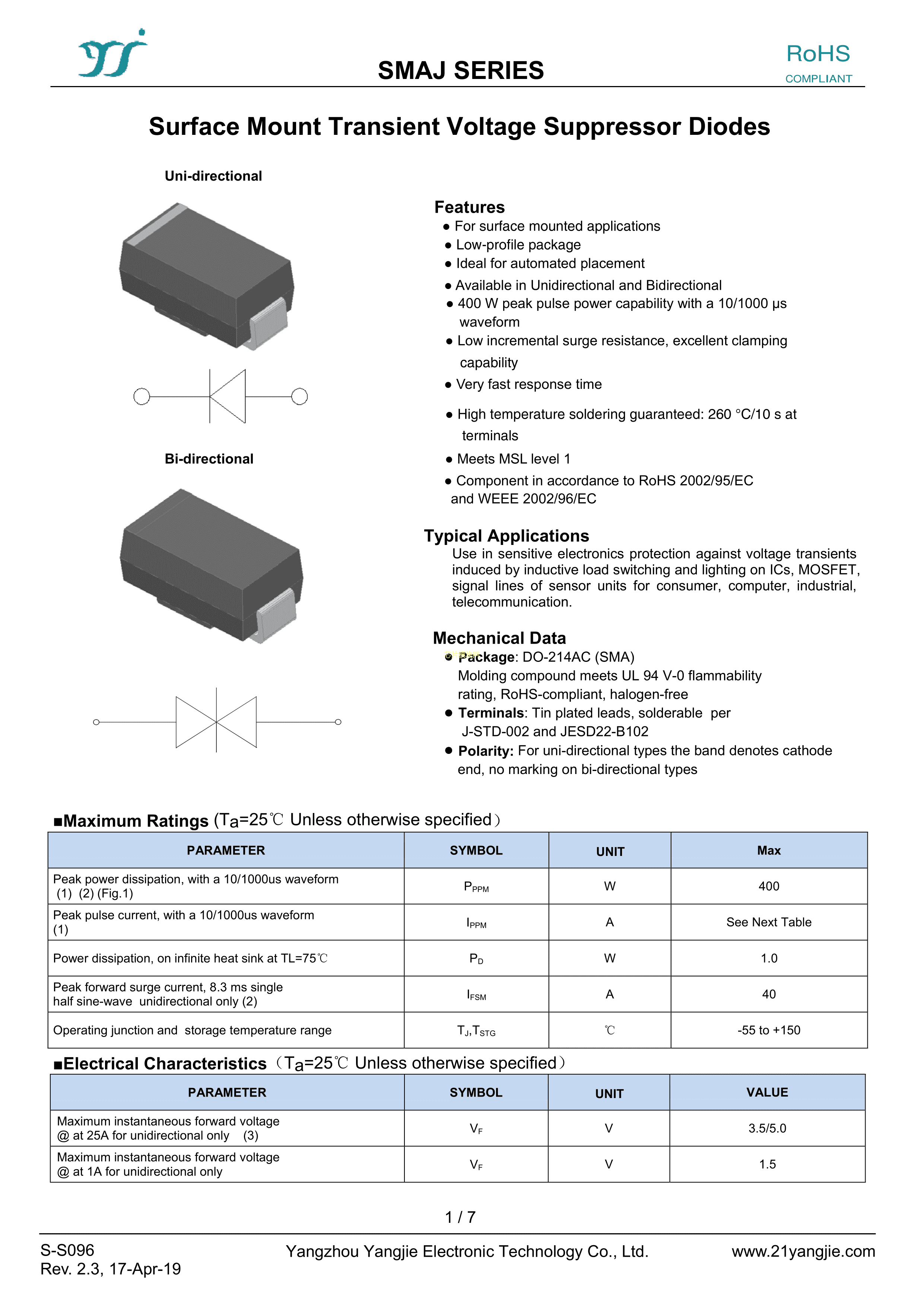SMAJ26CA数据手册SMA封装YANGJIE(扬杰)PDF规格书,中英文下载