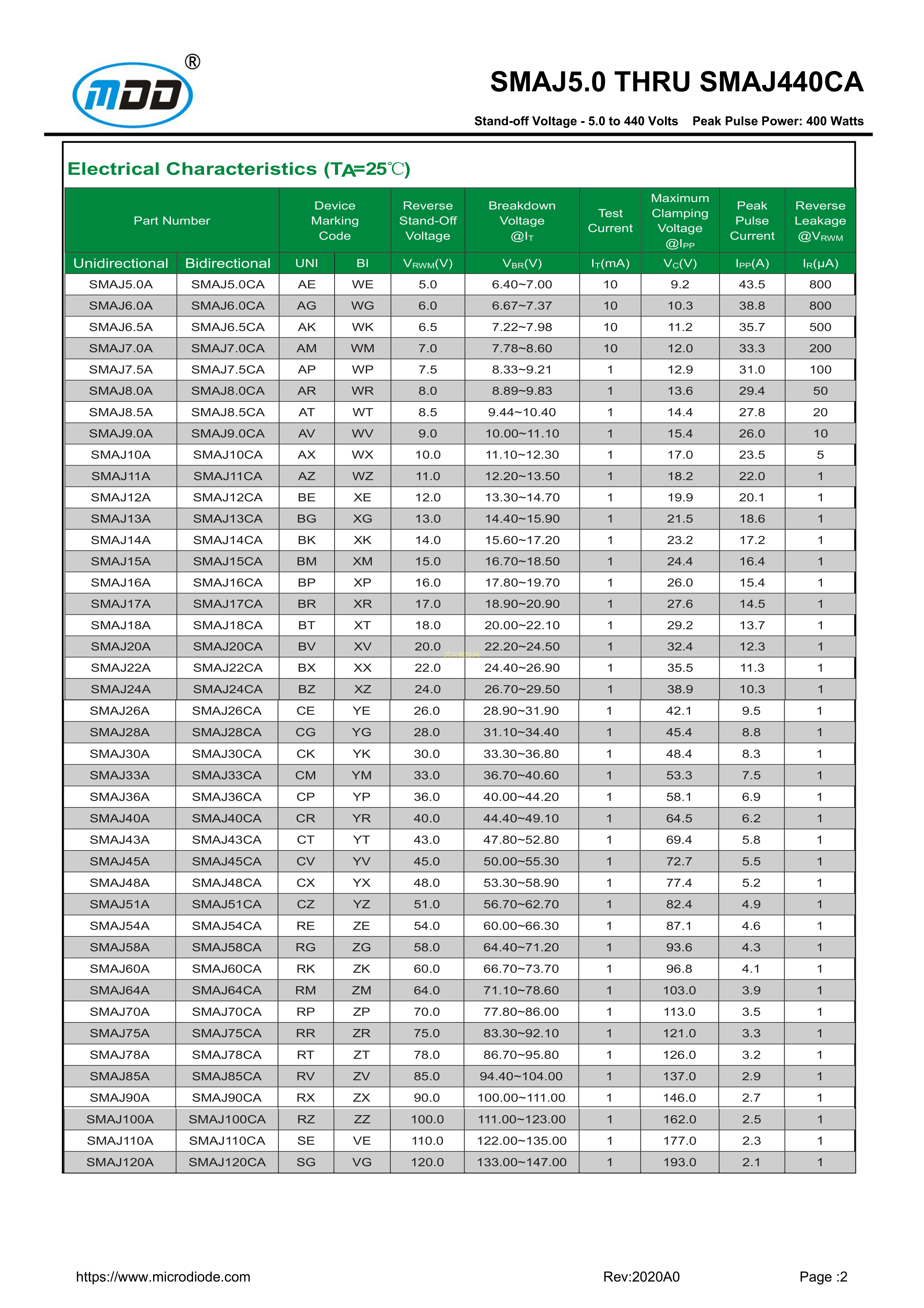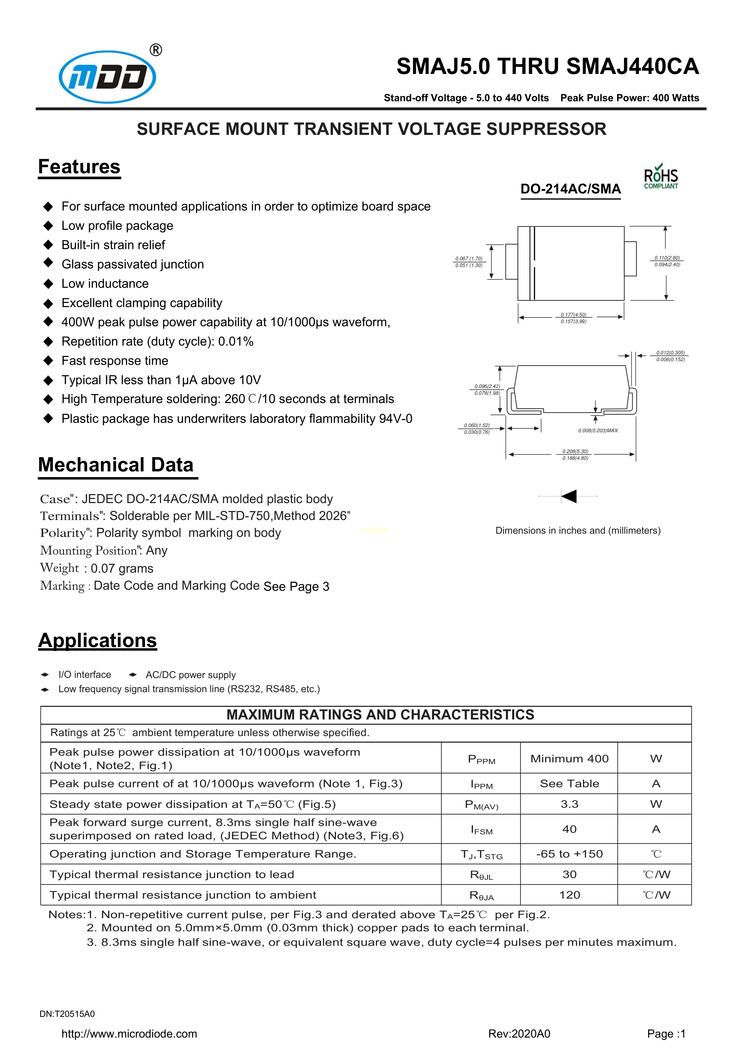 SMAJ51CA数据手册SMA(DO-214AC)封装MDDPDF规格书,中英文下载