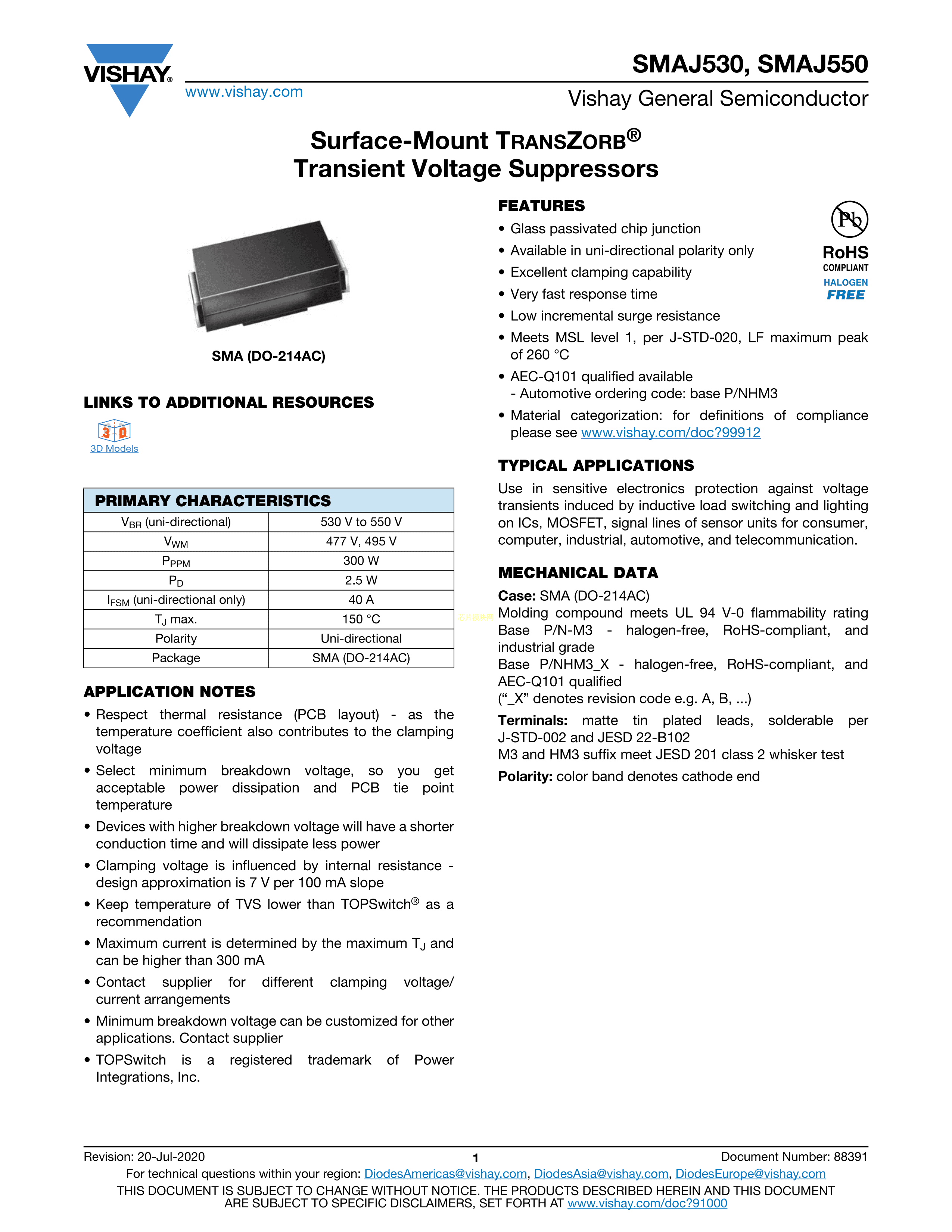 SMAJ530HM3_B-I数据手册DO-214AC封装VISHAY(威世)PDF规格书,中英文下载