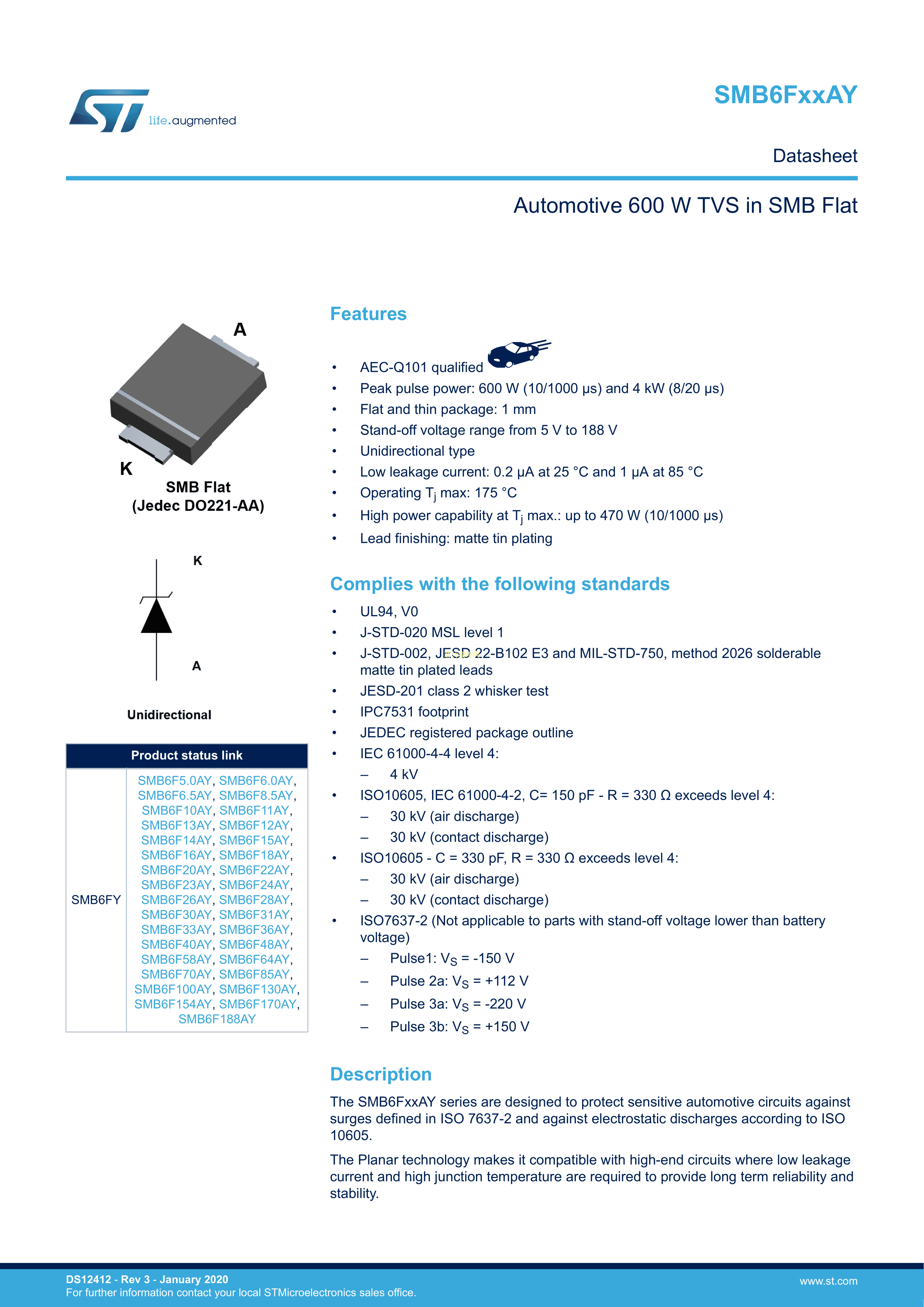 SMB6F6.0AY数据手册SMBflat封装ST(意法半导体)PDF规格书,中英文下载