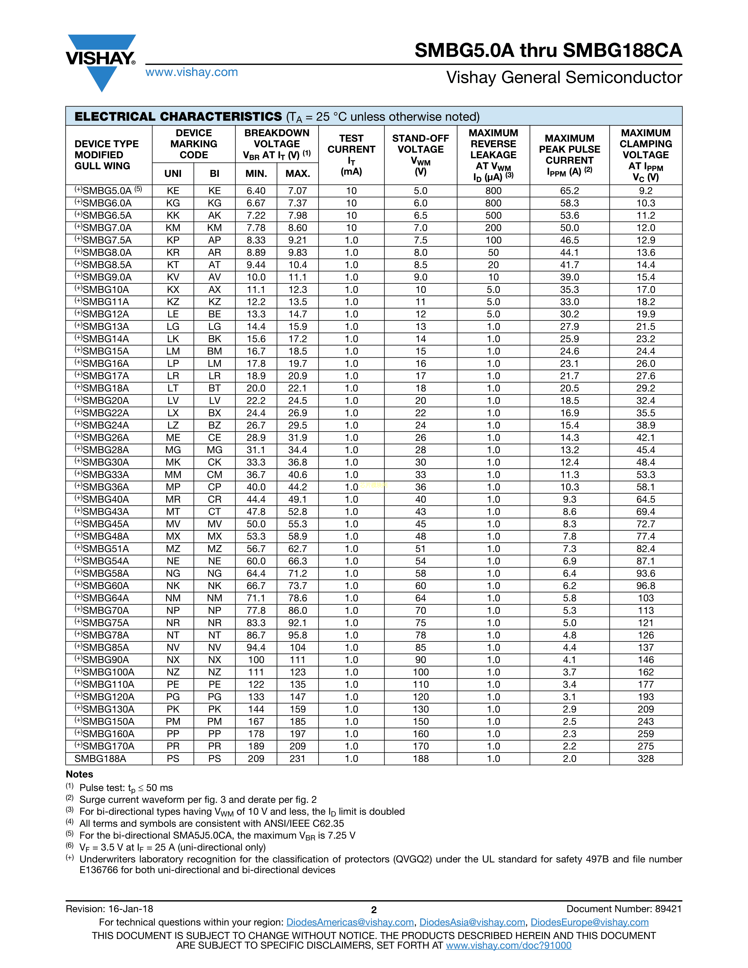 SMBG30CA-M3-52数据手册DO-215AA(SMBG)封装VISHAY(威世)PDF规格书,中英文下载